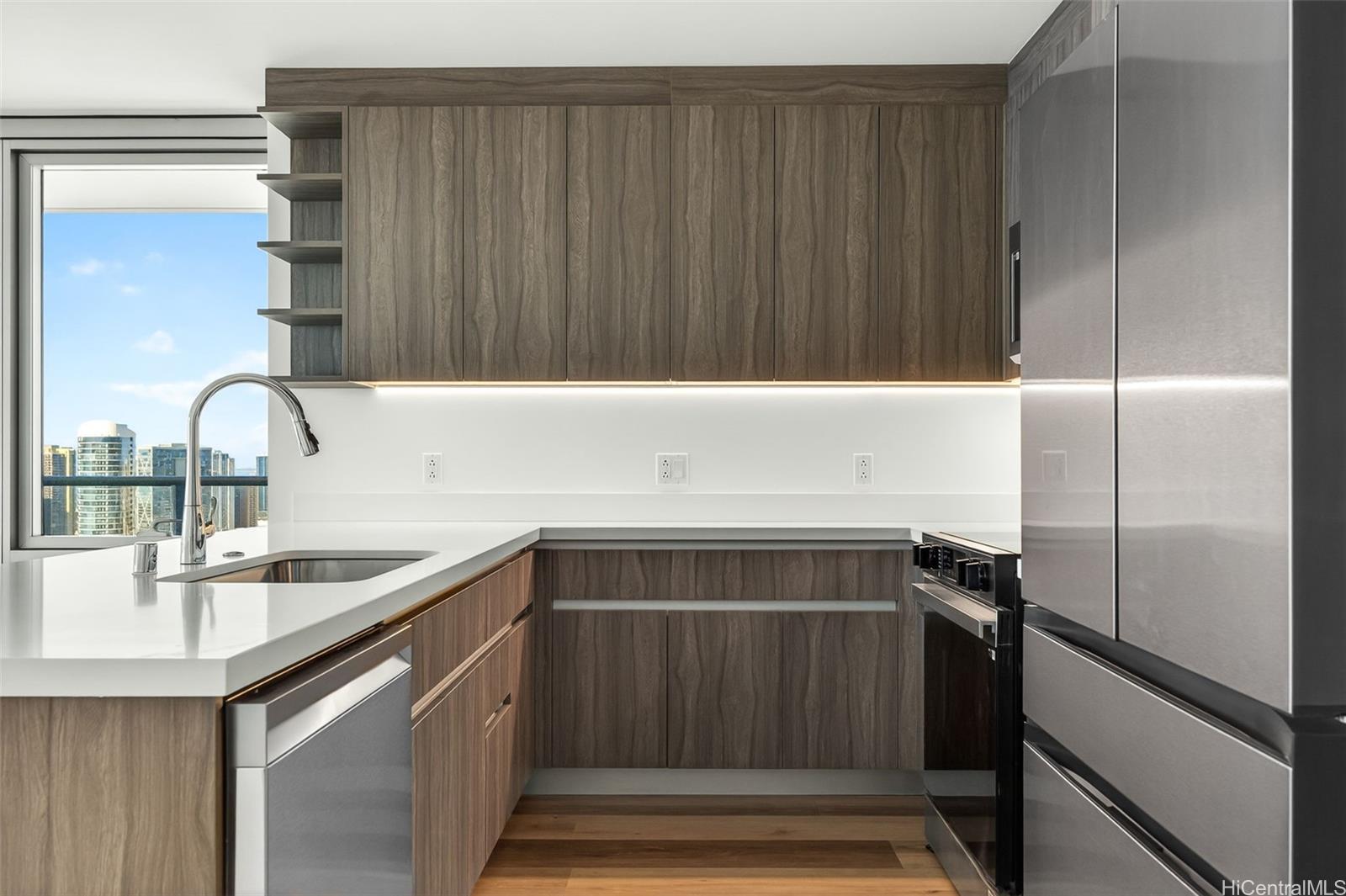Residents enjoy resort-style amenities, including an infinity pool and spa, BBQ pavilions, movie theater, fitness center, yoga studio, sauna, and elegant clubrooms. Ideally located and closed to Ala Moana Shopping Center, dining, and entertainment, this home offers the perfect blend of modern convenience and island lifestyle Listing by: Koam Realty (808) 321-5682