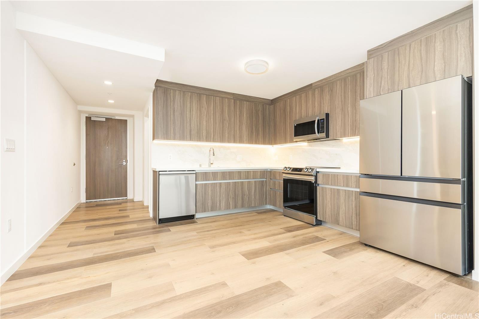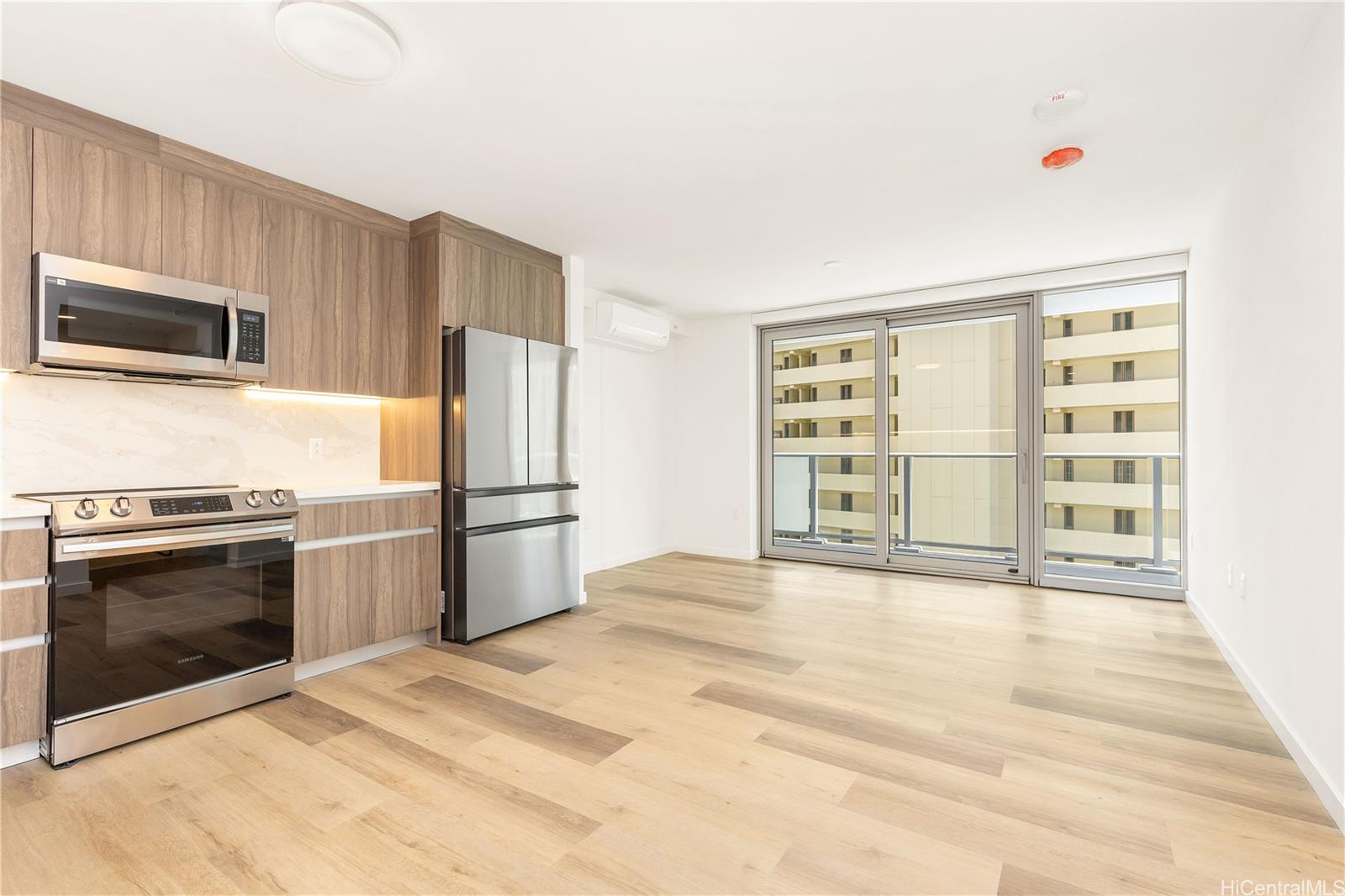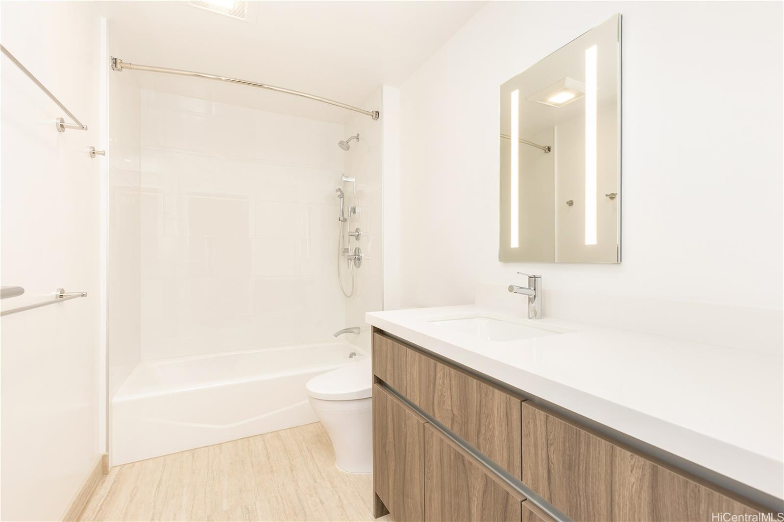 enhanced with nearly $22,000 in upgrades, including premium luxury vinyl plank flooring throughout the entire unit, a Toto Aquia washlet (bidet) toilet, and a designer kitchen with upgraded quartz countertops and full backsplash. For added comfort and convenience, motorized roll-down shades offer effortless light control. Floor-to-ceiling windows allow natural light in, while a quiet split AC system keeps the home cool year-round. The resort-style amenity deck is second to none: massive infinity pool and spa, private BBQ pavilions, movie theater, co-working space and media room, fitness center with yoga room and sauna, plus 24/7 security, secured covered parking, over 25 EV charging stations, and bike storage. This pet-friendly community truly blends modern design with lifestyle convenience. Don’t miss your opportunity to own a stunning, upgraded retreat at The Park on Keeaumoku."