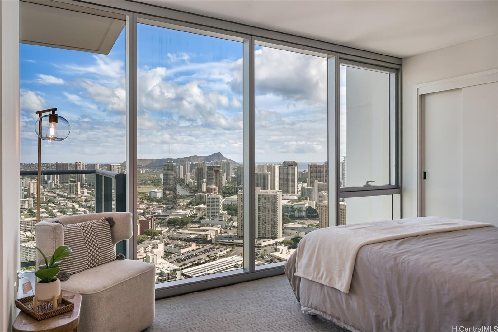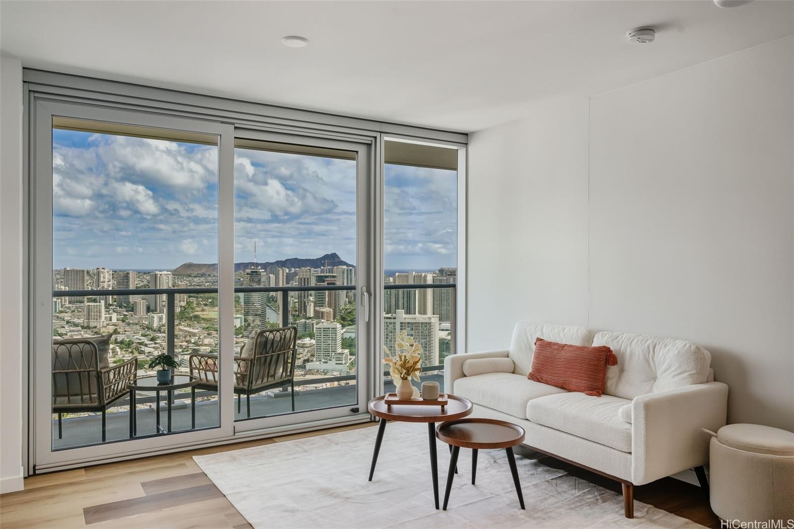 Seller will pay 1 year of HOA fees with full price offer! Modern 43rd floor- largest 1 bedroom/1 bath at the Park Keeaumoku with stunning city, ocean, mountain & Diamond Head views. Bright, open layout with flor to ceiling windows,quartz countertops, soft close cabinetry, & premium stainless steel appliances. Enjoy resort-style amenities- infinity pool, spa, sauna, fitness center, yoga studio, BBQ cabanas, co-working lounges, theater room, party rooms, dog park, 24 hour security. Prime midtown Ala Moana location near shopping, dining, beaches. Listing by: eXp Realty (808) 725-2794