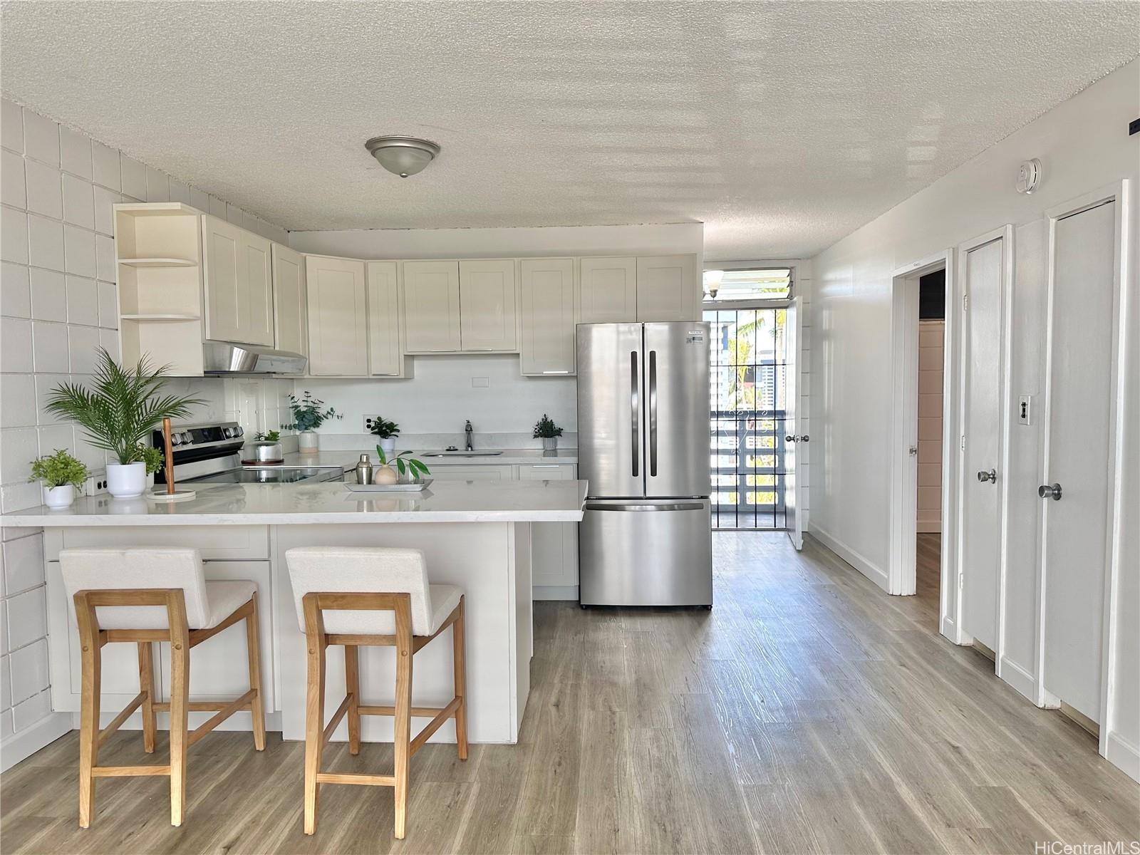 Super Convenient Location in the Heart of Kalihi - close to shopping, schools, business, bus routes. Newly Renovated Kitchen, Bathroom, Stainless Steel Stove; Brand New Refrigerator, Hood! Cute Barn Door and new paint! Newly renovated flooring (2024). Building has gated parking, relatively near the entry. New Security Door and new baseboards. Resident Manager is on the premises. Pet Friendly (Please Verify House Rules). Maintenance Fee includes Sewer and Water, Electric is separated per unit with HECO. Maintenance fee is $411.68 / month and 50% Owner Occupancy. Hurricane Insurance is 100%. Don't miss out : Bright and cheery - close to Costco, Home Depot, Airport, Freeway, it's going to be great! Listing by: Hara Realty, LLC (808) 941-2154