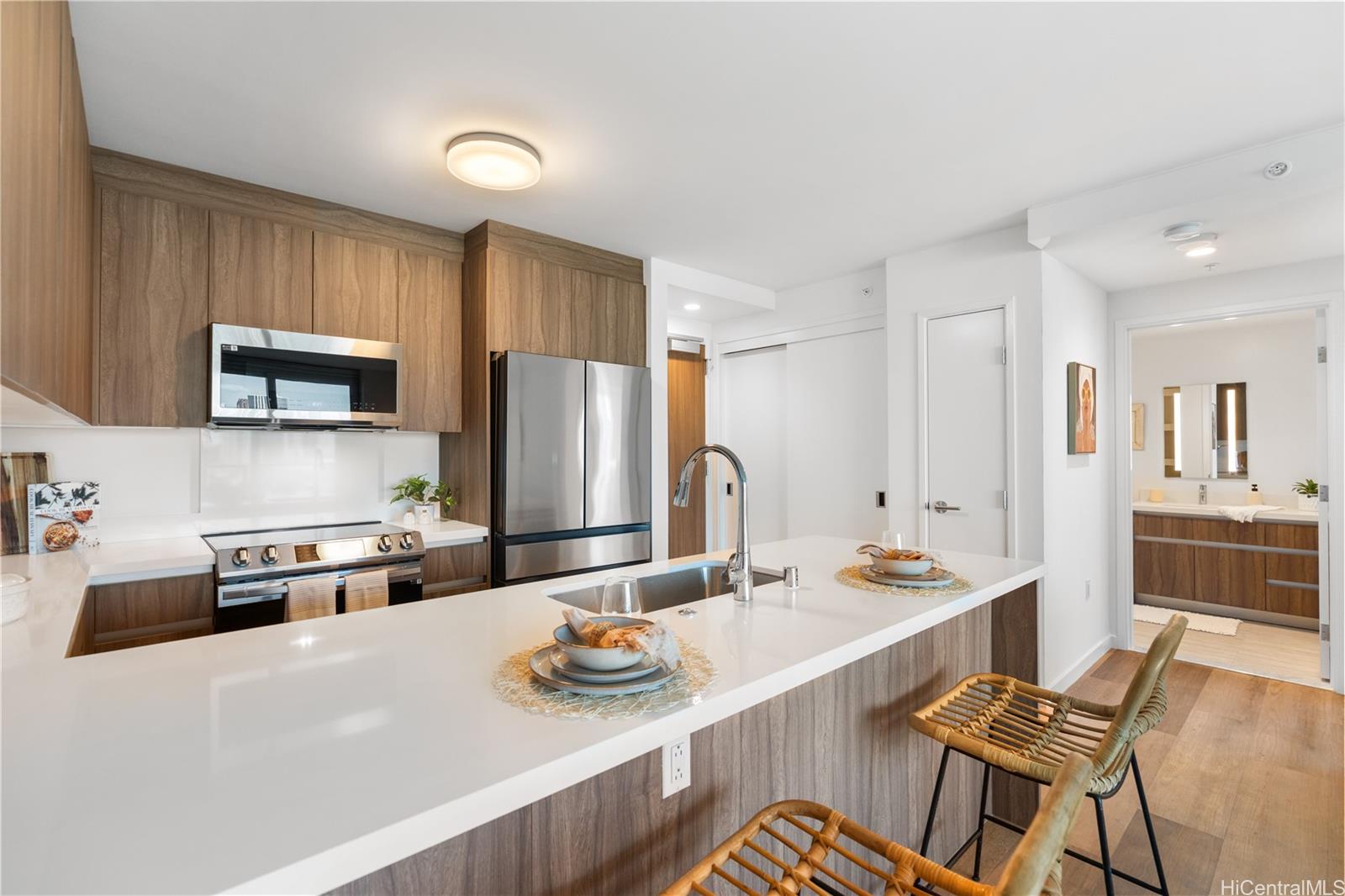 Welcome to The Park on Ke‘eaumoku, a stunning new landmark of modern living in the heart of Honolulu. Be the first to call this brand-new 1-bedroom, 1-bath residence in the Liona Tower home — featuring quartz countertops, stainless steel appliances, split AC, and floor-to-ceiling windows that frame sweeping city and ocean views from your private 70 sq. ft. lanai. This unit also offers the convenience of being the closest to the elevator on the 16th floor.