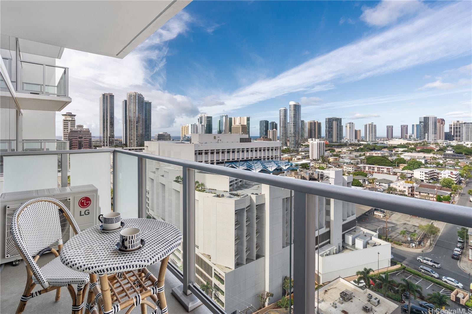 [0] => Welcome to The Park on Ke‘eaumoku, a stunning new landmark of modern living in the heart of Honolulu. Be the first to call this brand-new 1-bedroom, 1-bath residence in the Liona Tower home — featuring quartz countertops, stainless steel appliances, split AC, and floor-to-ceiling windows that frame sweeping city and ocean views from your private 70 sq. ft. lanai. This unit also offers the convenience of being the closest to the elevator on the 16th floor.