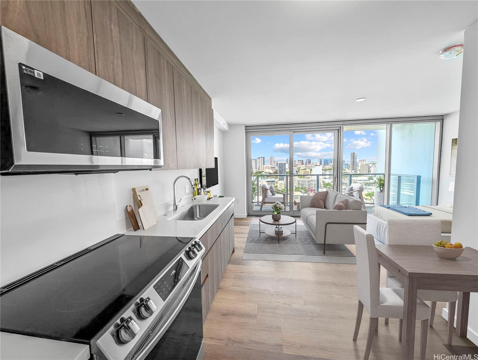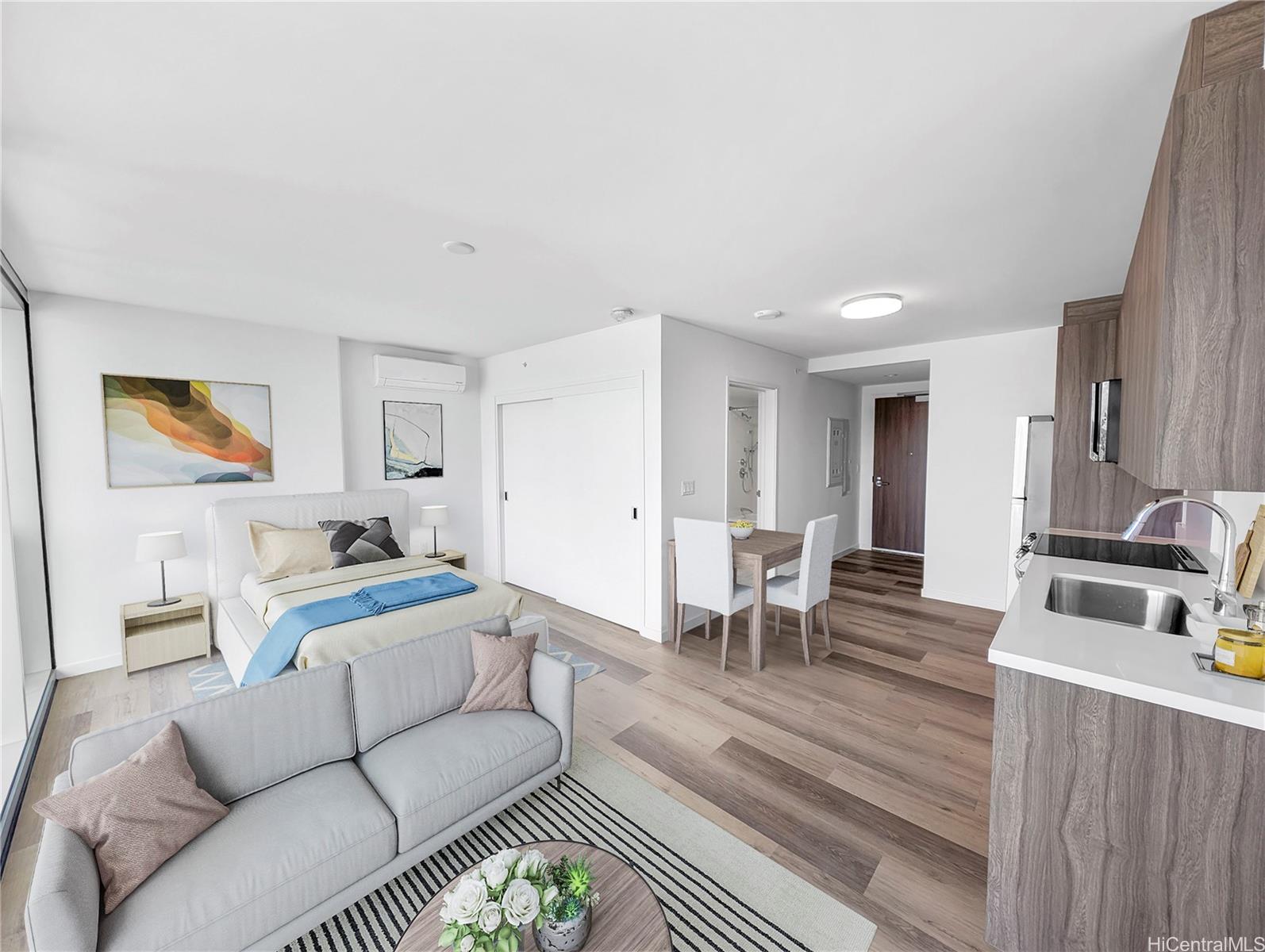 Rare Opportunity-Largest Studio at The Park on Keeaumoku! Don't miss your chance to own the largest studio floor plan in one of Honolulu's most exciting new developments! Located on a desirable mid-high floor, this bright, open-concept unit features floor-to-ceiling windows, modern finishes, split A/C, and a private lanai-- perfect for relaxing or entertaining. Enjoy over an acre of resort-style amenities: a stunning infinity pool & spa, fitness center, sauna, movie theatre, multi-media room, BBQ cabanas, co-working spaces, and more. Located in the heart of town, just minutes from Ala Moana Center, the beach, Waikiki, and quick freeway access. Plus, enjoy the ultimate urban lifestyle with shops and restaurants right downstairs on the 1st and 2nd floors. Experience modern island living with style, convenience, and unbeatable location. Listing by: Coldwell Banker Realty (808) 542-6573