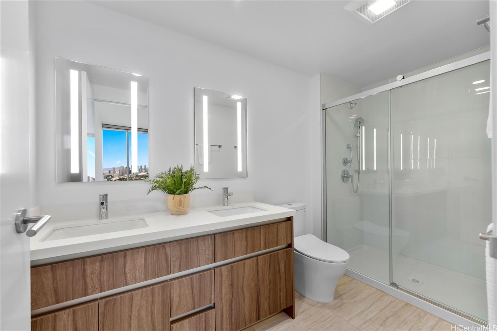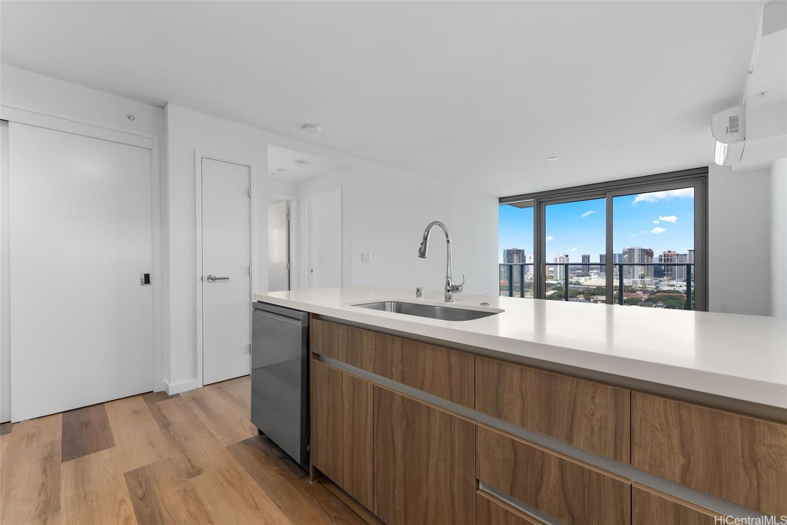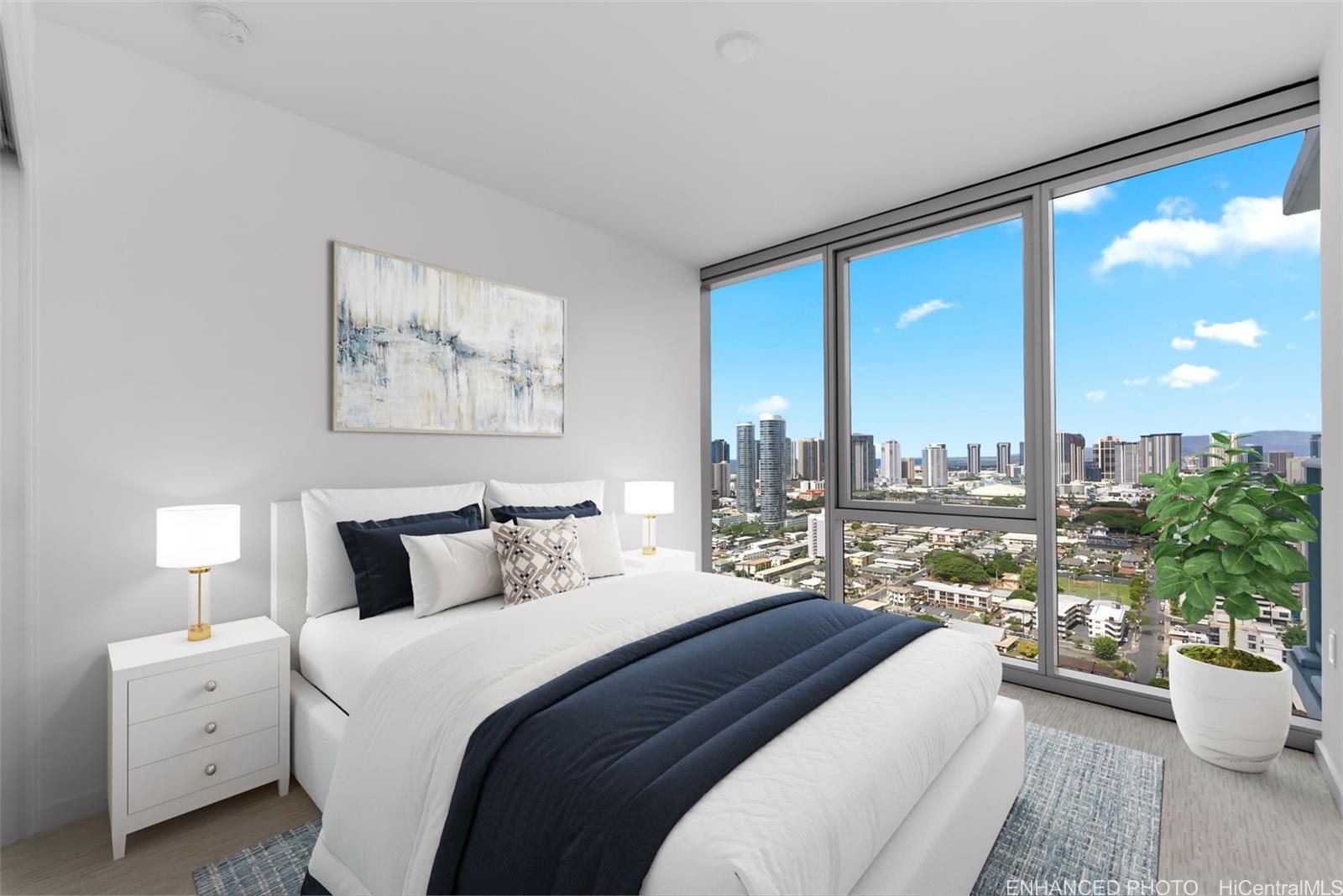 Floor-to-ceiling windows showcase sweeping city skyline views, on this high floor in the brand-new Park at Keeaumoku, bringing in abundant natural light by day and city lights at night. Modern finishes, split A/C, and energy-efficient appliances complete this urban retreat. Resort amenities include infinity pool, spa, movie theater, co-working lounges, and BBQ cabanas. Here, you’ll find the best of modern Honolulu living — a rare chance to enjoy resort-style amenities and prime Ala Moana convenience at a value unmatched by other new developments in town. A few photos have been virtually staged(enhanced). Listing by: REMAX Hawaii (808) 392-9799