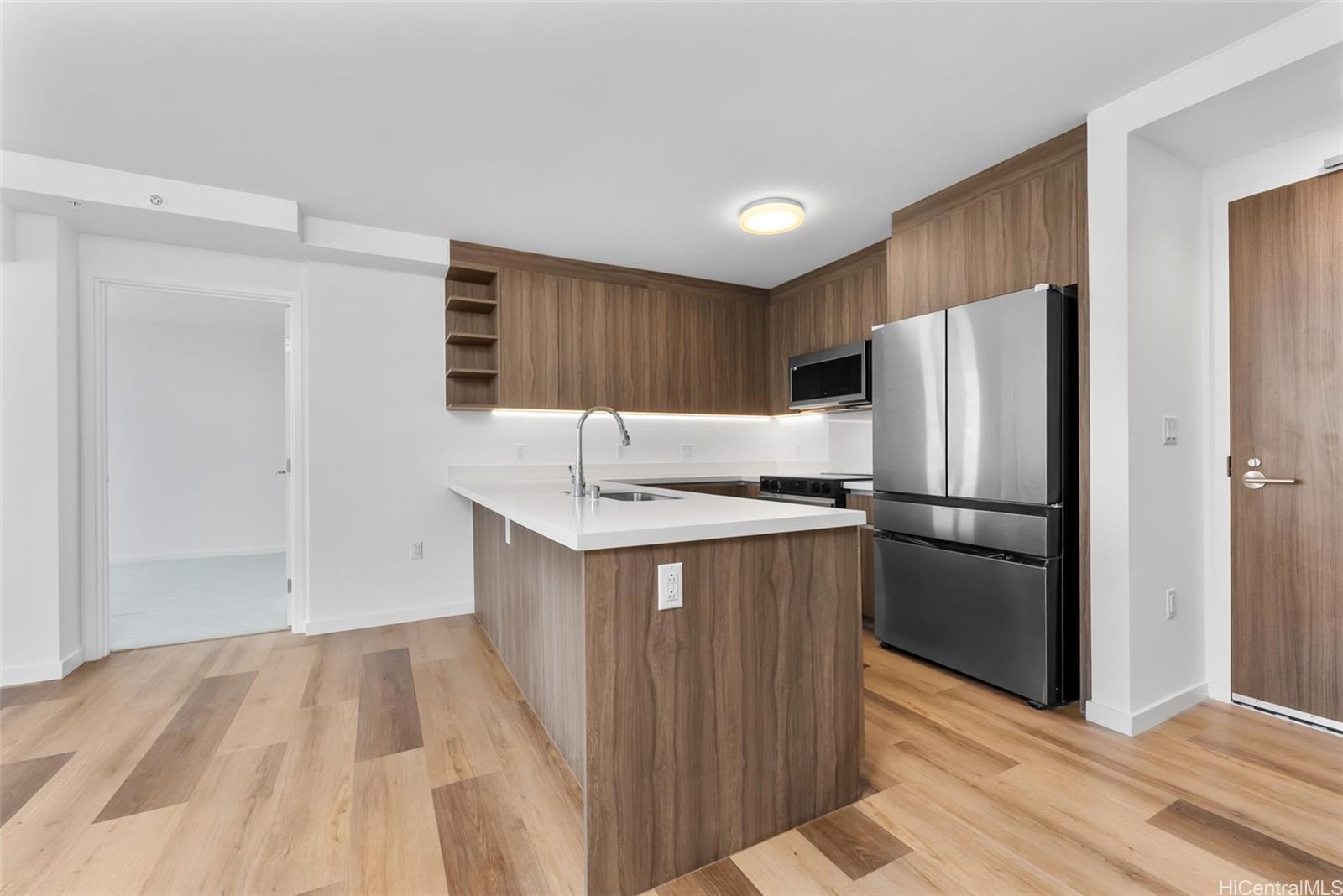 [0] => Floor-to-ceiling windows showcase sweeping city skyline views, on this high floor in the brand-new Park at Keeaumoku, bringing in abundant natural light by day and city lights at night. Modern finishes, split A/C, and energy-efficient appliances complete this urban retreat. Resort amenities include infinity pool, spa, movie theater, co-working lounges, and BBQ cabanas. Here, you’ll find the best of modern Honolulu living — a rare chance to enjoy resort-style amenities and prime Ala Moana convenience at a value unmatched by other new developments in town. A few photos have been virtually staged(enhanced).