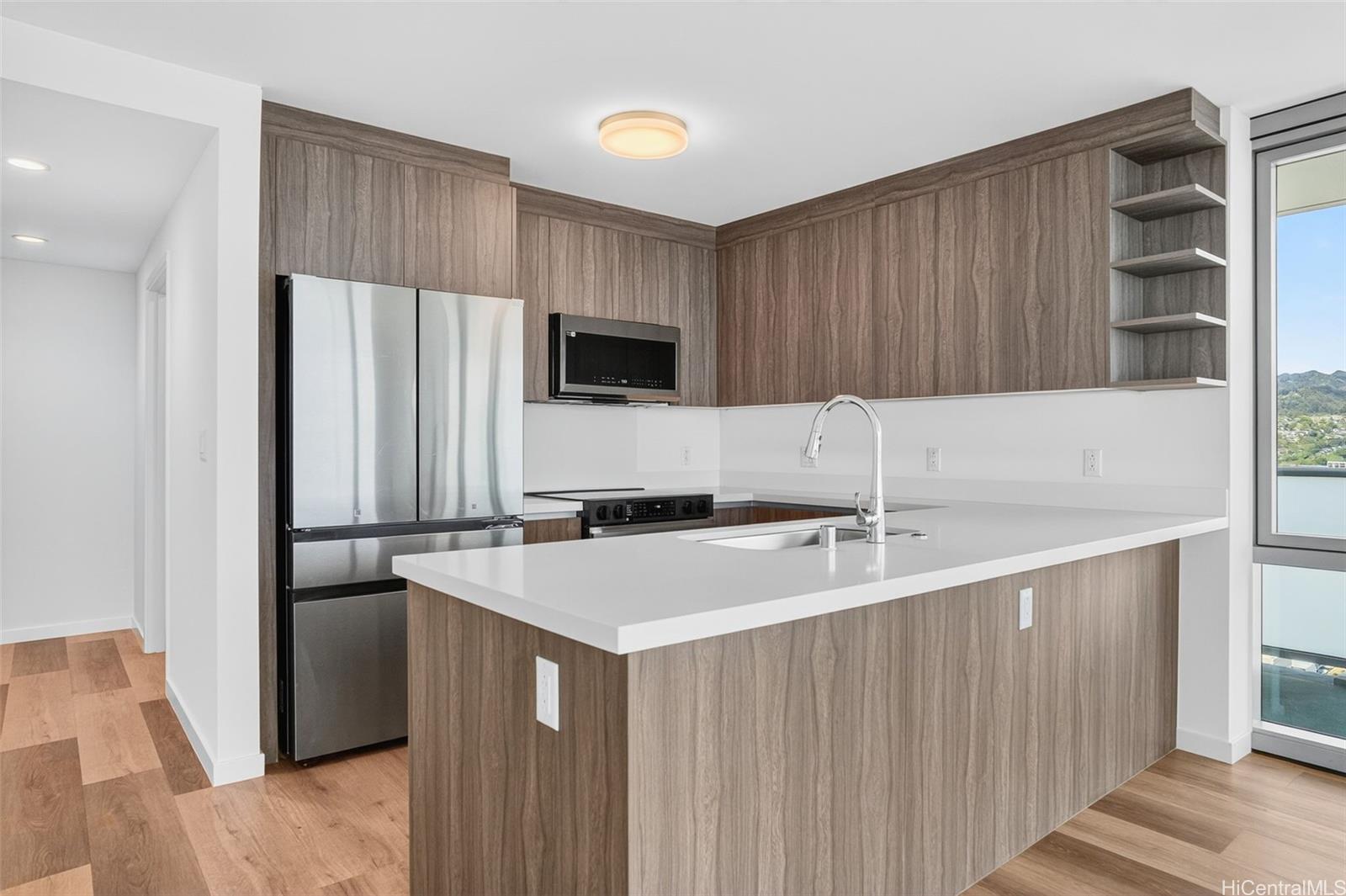 Welcome to The Park on Keeaumoku - Honolulu’s newest landmark community and best LOCATION, where modern design meets island elegance. Perched on the 36th floor, this brand-new, never-lived-in 2-bedroom, 2-bath, 2-parking corner residence offers 1,238 sq. ft. of well-designed unit, filled with natural light through floor-to-ceiling windows and luxury vinyl plank flooring in the living room and kitchen, quartz countertops, modern frameless cabinetry, split A/C in all rooms, and a convenient separate laundry room and storage closet. Enjoy resort-style amenities including an infinity-edge pool, spa, private cabanas, BBQ pavilions, theater room, fitness and yoga studios, sauna, co-working spaces, and nearly half an acre of landscaped green space at ground level. The Park on Keeaumoku is pet-friendly, secured, and centrally located near Ala Moana Center, beaches, shopping, dining, and entertainment. With on-site retail and dining coming soon, this residence combines luxury, lifestyle, and convenience in one of Honolulu’s most dynamic and walkable neighborhoods — where city living truly meets resort-style sophistication. Listing by: HI Choice Realty (808) 358-1415