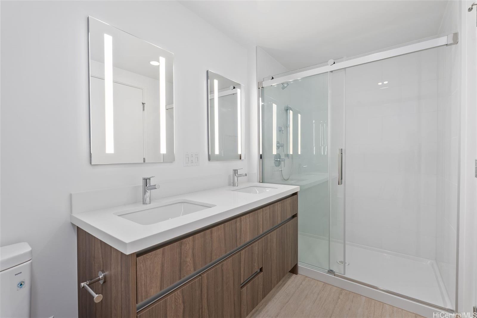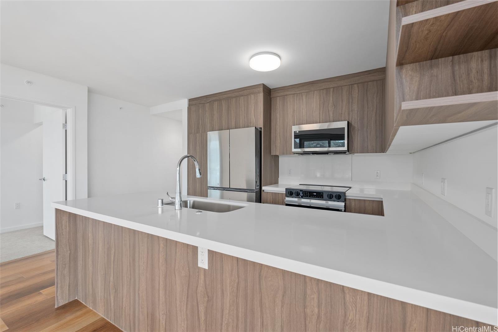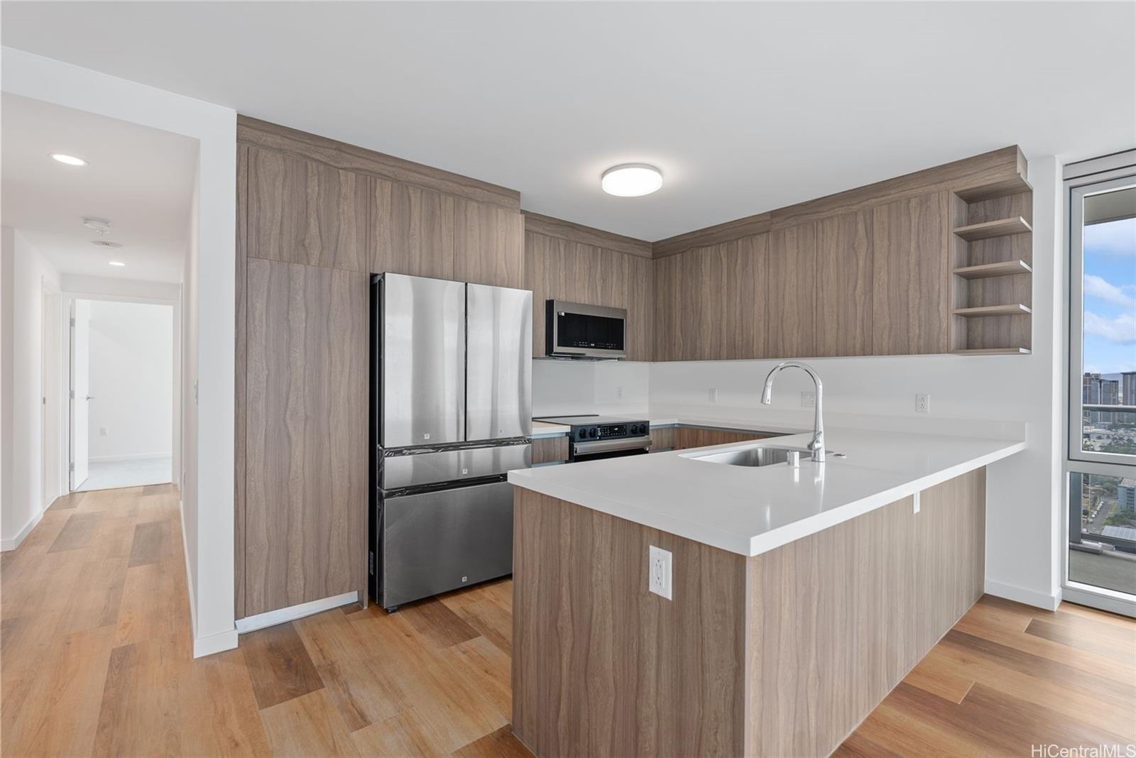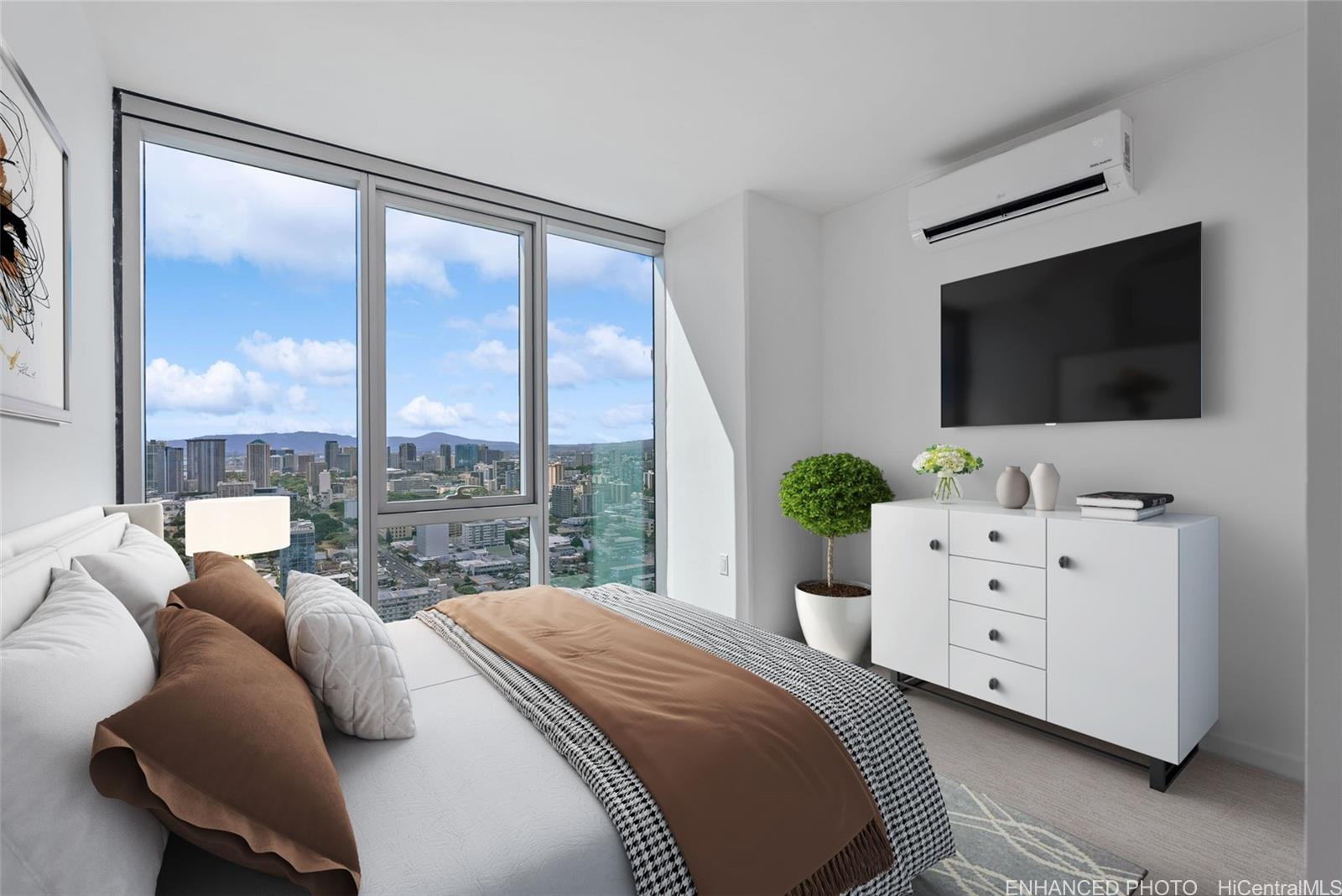 PRICED TO SELL!!! The Park on Keeaumoku’s Liona Tower #3718 is a brand-new 3 bedroom, 2 bath residence with 1,147 sf interior and a rare L-shaped wraparound lanai (186 sf) showcasing 270° views—South Shore Ocean toward Ala Moana, the full Ewa coastline, mountains, sunsets, and even eastward toward UH with a peek of Koko Head. Situated high on the preferred 18 stack, this home is one of only 40 3-bedroom/2-bath units across both Liona and Rycroft Towers, underscoring its rarity and value. The open layout features floor-to-ceiling windows and luxury vinyl plank flooring that maximize light and views. The kitchen offers quartz countertops, stainless steel appliances, and designer fixtures, while bedrooms include plush carpet. Bathrooms are finished with quartz and LED medicine cabinets. A quiet, efficient split AC provides year-round comfort. Pet-friendly and secure, the building offers resort-style amenities: infinity pool, spa, movie theater, fitness center with sauna and yoga room, BBQ pavilions, landscaped decks, 24/7 security, covered parking, bike storage, and EV charging. A few photos have been virtually staged(enhanced). Listing by: REMAX Hawaii (808) 382-7286