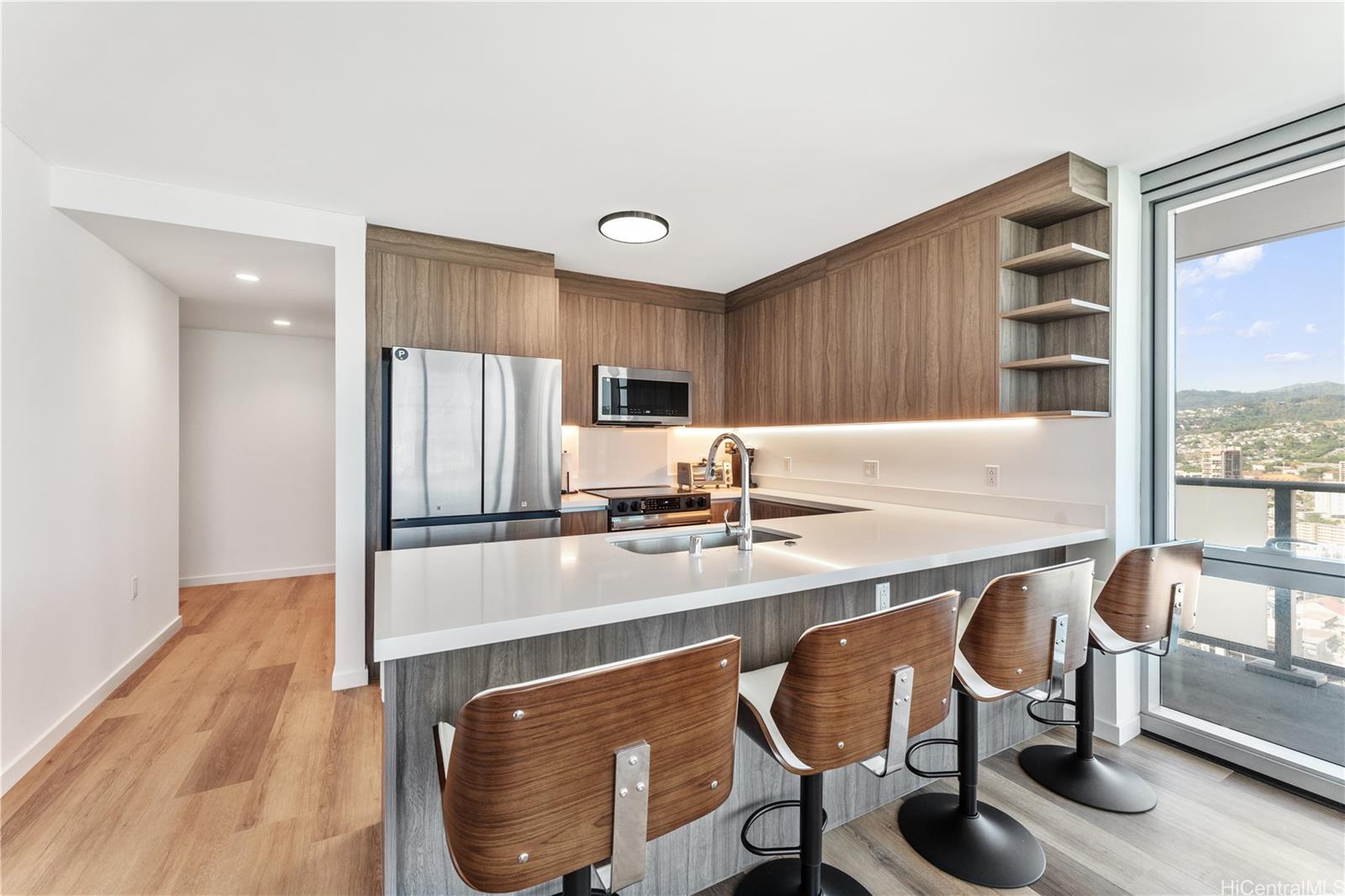 LOCATION • LOCATION • LOCATION! Welcome to The Park on Keeaumoku, Honolulu’s newest landmark community where modern design meets effortless island living—and everything is at your doorstep. This brand-new, never-lived-in 2BD/2BA/2PK residence offers a spacious lanai framing sweeping ocean, city, Diamond Head, and mountain views. Floor-to-ceiling windows, complemented by refined finishes: frameless cabinet, quartz countertops, luxury vinyl plank flooring, split AC in every room, a walk-in closet, and a separate laundry room. Live the ultimate walkable lifestyle: you’re a short stroll to Ala Moana Center—shopping, dining, entertainment, and soon-to-open food courts—plus beaches, transit, and everything urban Honolulu offers. With on-site retail coming. Resort-style amenities elevate every day: swim in the infinity pool, unwind in the spa, grill at BBQ cabanas, catch a film in the theater, or reset in the fitness center, yoga studio, sauna, and nearly half an acre of green space at The Grove. Centrally located and designed for convenience, this residence blends luxury, lifestyle, and location in one of Honolulu’s most dynamic neighborhoods. Listing by: Five Star Realty, Inc. (808) 220-3093