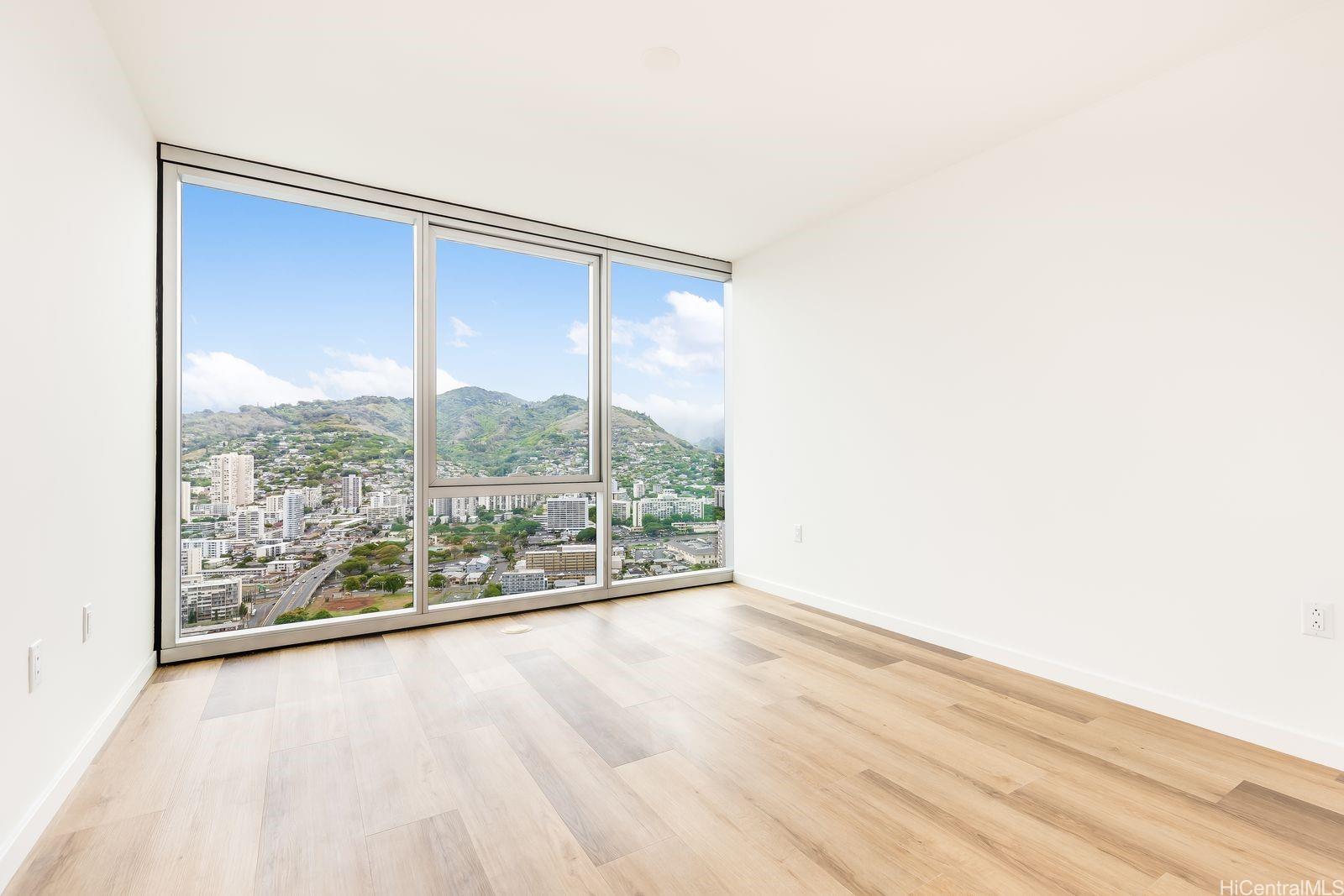 [0] => Most desired 3 bedroom 2 bath #4318 in the Liona Tower. Only 20 3 bedroom units available. Luxury living with a L-shaped lanai and floor to ceiling glass view windows offering a spectacular 180 plus degree view from the ocean to the mountains. Enjoy the wonderful sunsets and the beautiful city lights at night. High quality quartz kitchen countertops, designer fixtures, and split A/C system. Upgraded with high quality flooring throughout.
