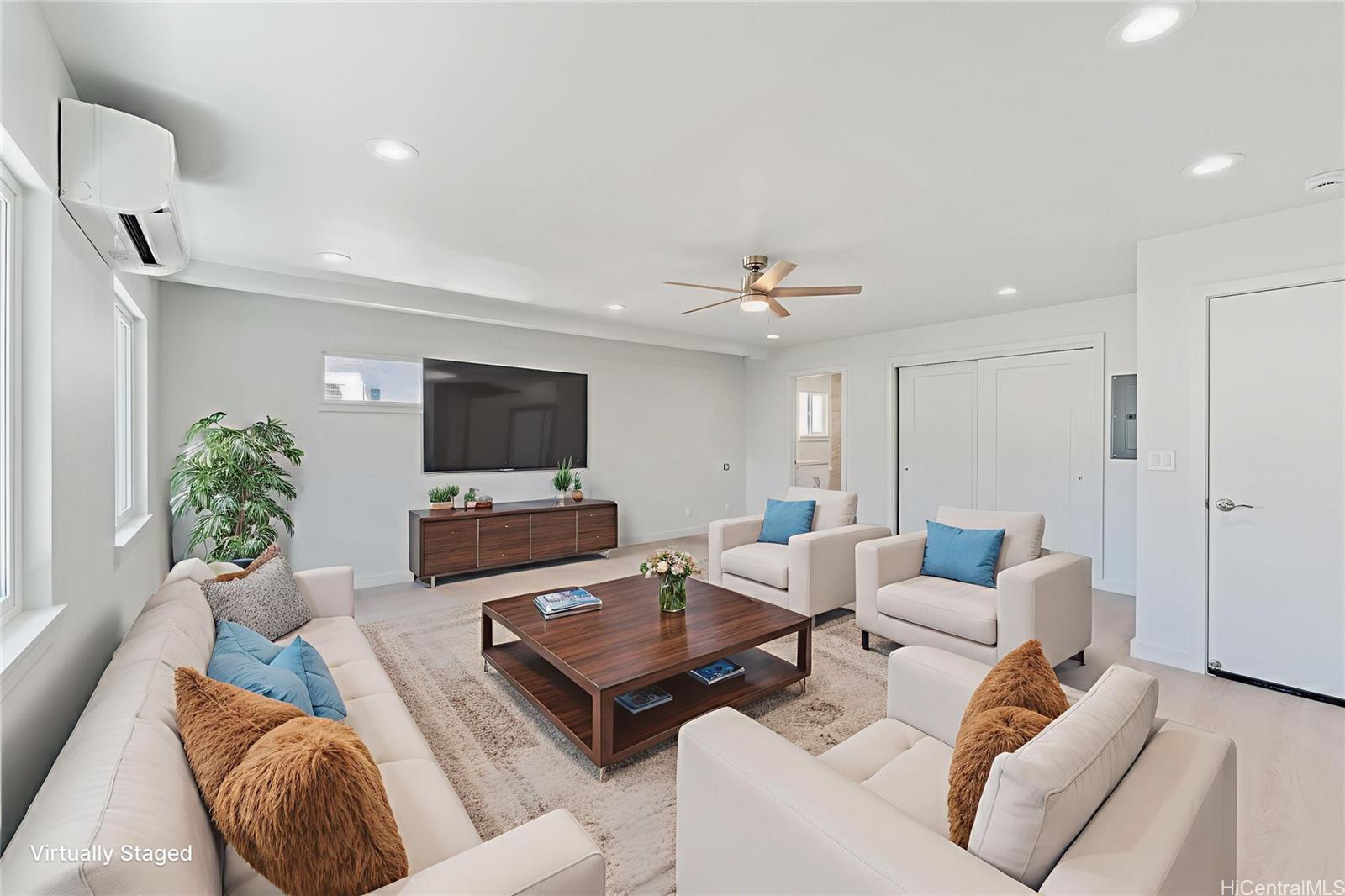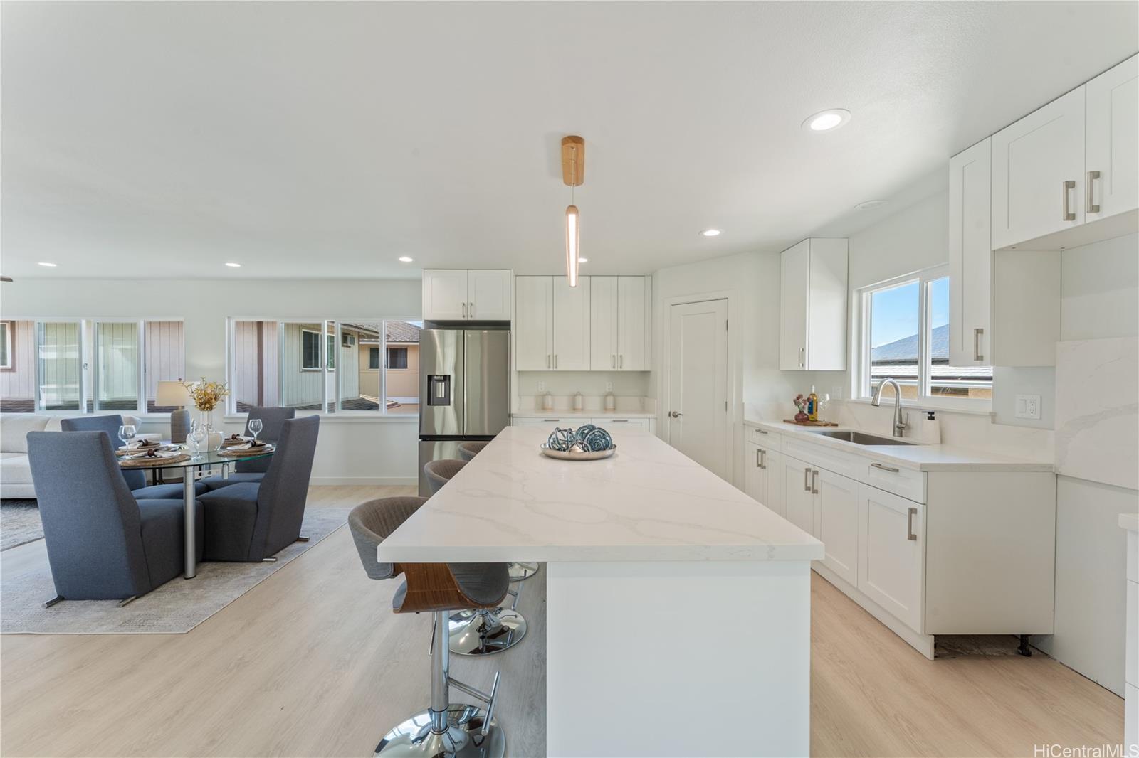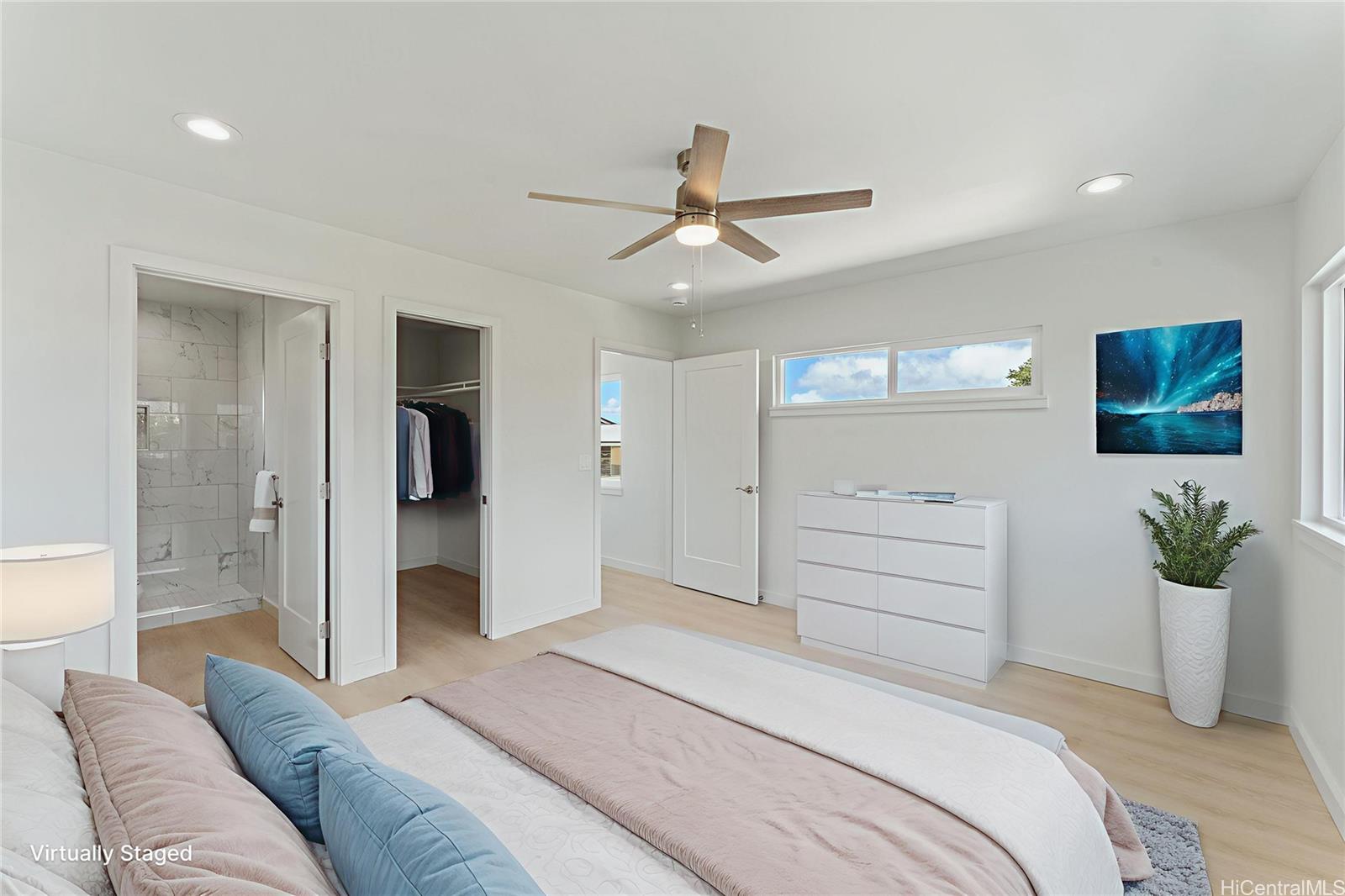 Experience the best of modern living in this stunning brand new, custom-built home offering over 3,000 sq. ft. of thoughtfully designed space. With 6 bedrooms and 5 bathrooms, this residence combines flexibility, style, and long-term value. The upper level features 3 bedrooms, 2 bathrooms, a spacious living room that opens up to a wet bar with a large pantry. The lower level can be configured as two separate living areas: 2 bed, 2 bath unit with full kitchen and living space, plus a large studio suite with private entrance ideal for guests, extended family, or rental income. Set on a large, level, landscaped lot with an irrigation system, this property also offers a spacious enclosed 2-car garage and driveway parking for 4+ vehicles. Enjoy peace of mind with all-new construction, including brand new plumbing, electrical, roofing, and foundation delivering lasting quality, efficiency, and comfort. Located on a nice, one-way street that is conveniently close to the freeway on and off ramp, public transportation, parks, shopping centers, and more. This exceptional home offers the perfect blend of modern design, versatility, and new-build reliability. A rare find for today’s market! Listing by: Hilina'i Homes Incorporated (808) 358-5590