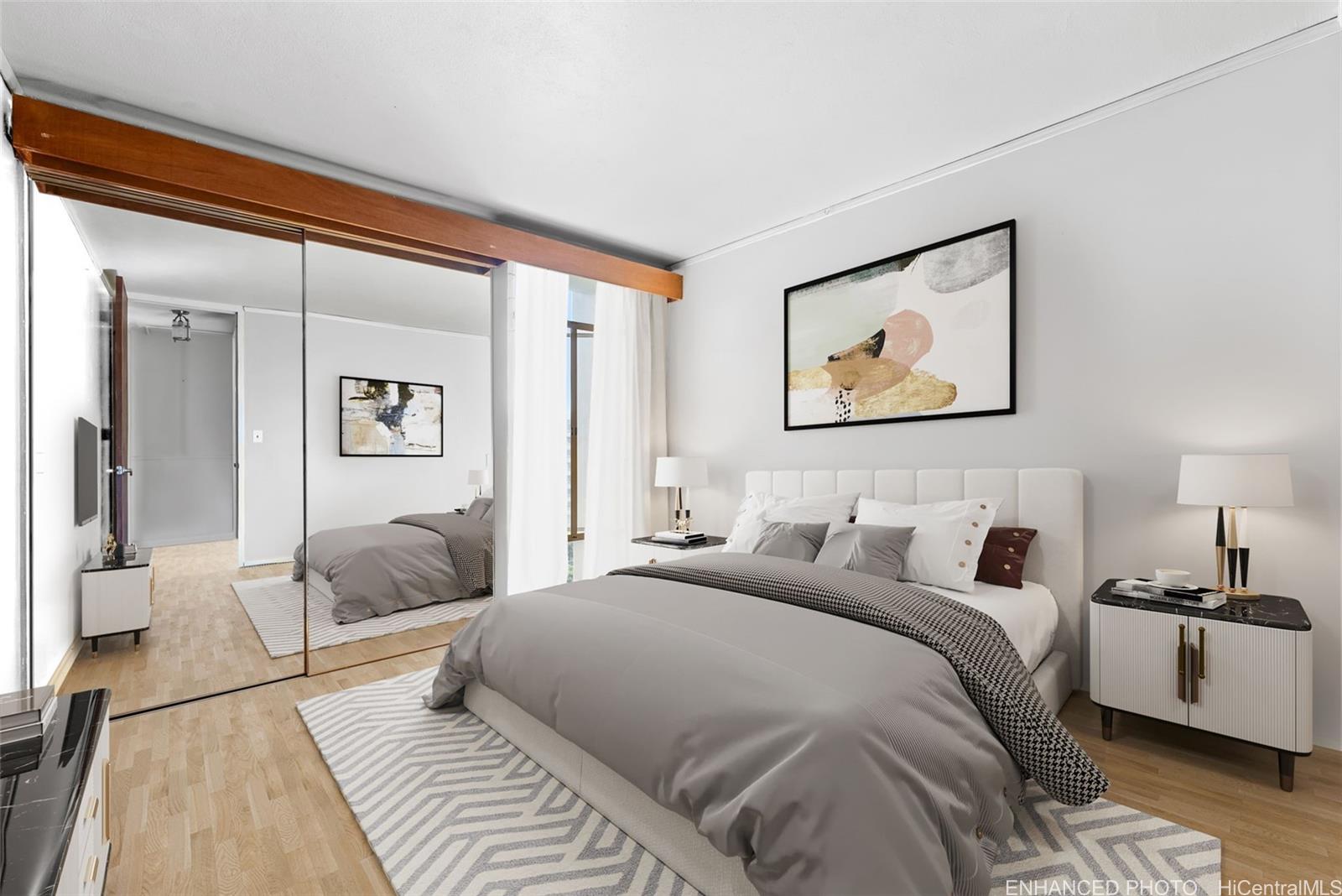 string(671) "PREFERRED CORNER/END UNIT WITH 2 COVERED PARKING STALLS! Situated in the heart of Honolulu, don't miss this RARELY AVAILABLE 2 bed/1 bath unit in Queen Emma Gardens. This bright and breezy unit features hardwood flooring, efficient floor plan and additional windows for maximum natural light. Relax on your private lanai and soak in the beautiful city views. Enjoy amazing amenities such as a swimming pool, children’s wading pool, Tea Houses, playground, BBQ areas, 24-hr security, and more! Conveniently located near Downtown Honolulu, restaurants, shopping and entertainment. Don’t miss this fantastic opportunity! A few photos have been virtually staged/enhanced."