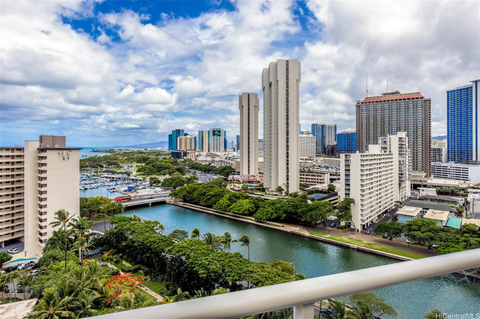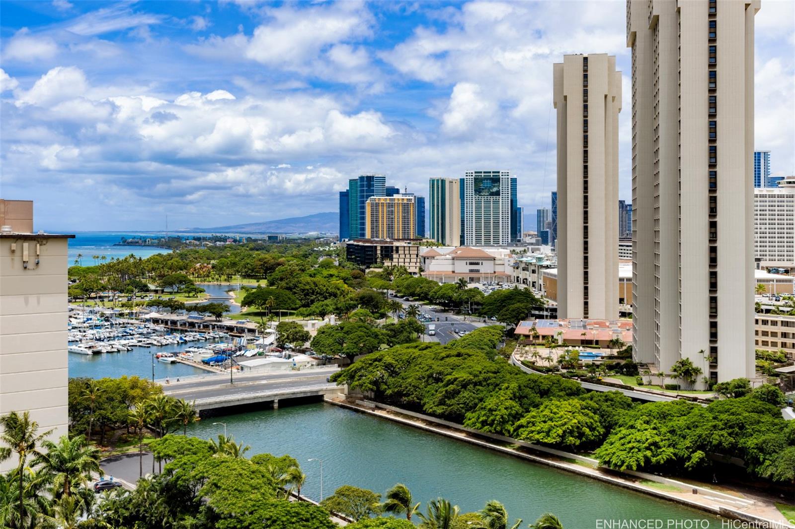 string(1082) "Situated at the entrance of Waikiki, The Watermark is one of Honolulu's most established luxury condominium destinations. This 2-bedroom, 2-bath residence shows incredible pride of ownership throughout. Step inside and be greeted by captivating Pacific Ocean, Marina, and Beach Park views from your primary living area, lanai space, and both bedrooms. This residence features an open-concept living experience with a designer kitchen clad in Viking appliances, spacious main living room area opening up to your private lanai, plus two large bedrooms, including a primary suite with a true resort-style ensuite bath. On-site resort amenities include a saltwater swimming pool, Jacuzzi tub, sauna, multiple barbecue spaces, tropically landscaped paths and yard spaces, exercise room, and more. The Watermark is sits just minutes to all-things Waikiki, Ala Moana, and Kaka'ako, putting near-endless options for dining, shopping, entertainment, beach and water activities at your convenience. Discover Paradise, Found at The Watermark #1605. Listing includes enhanced, zoomed-in photos."