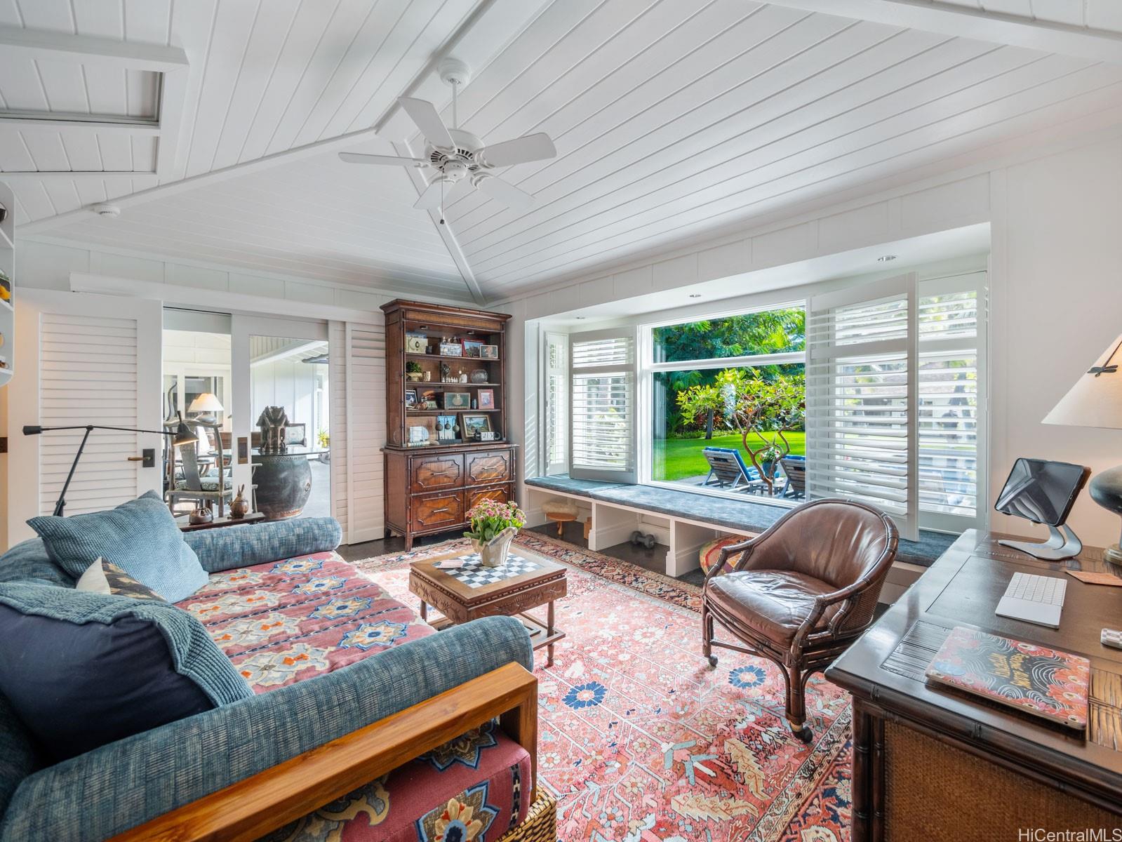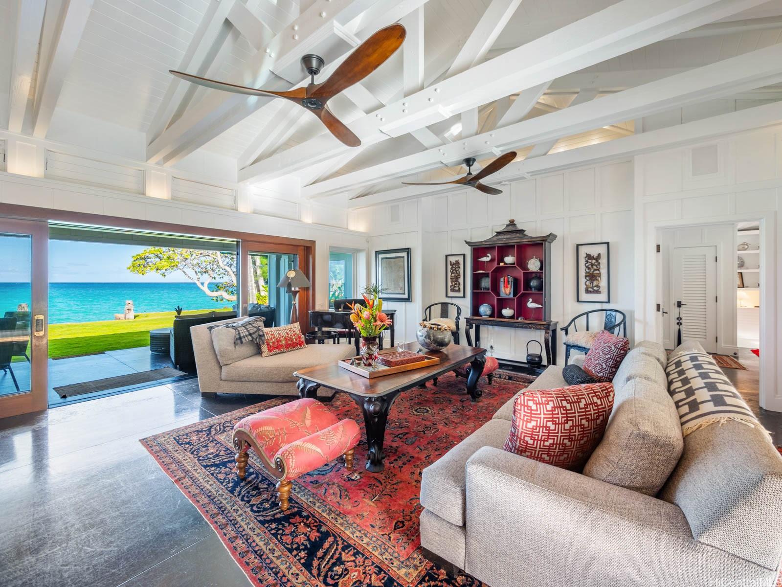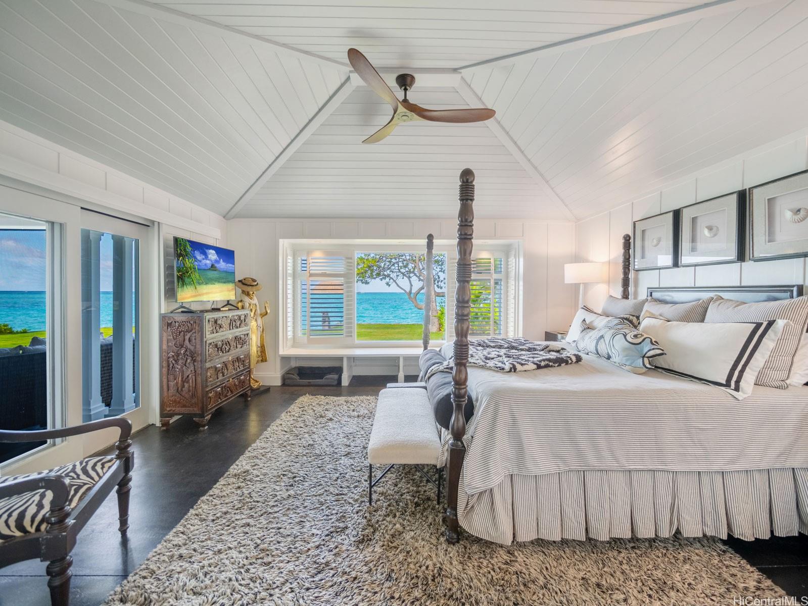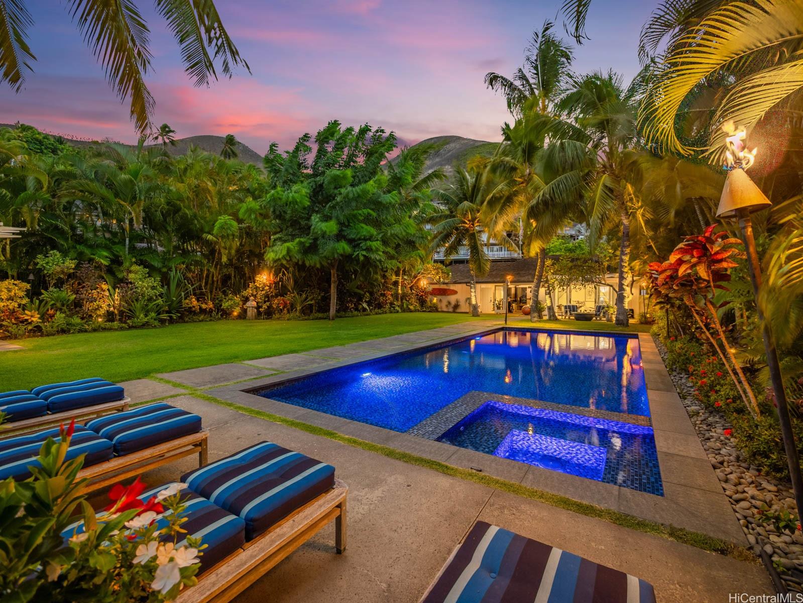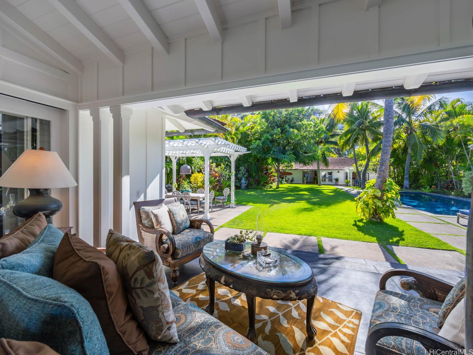 string(755) "A charming jewel box on the bright blue waters of Lanikai — at the very end of the coveted Lanikai Loop — this 5-star couples’ retreat feels like a private resort. Gated, secluded, and beautifully manicured, it’s a newer-built Hawaiiana-style oasis. Enjoy a long, heated, tiled saltwater pool, jacuzzi, infrared sauna, gym area, and expansive green lawns. Dine or entertain under a trellis, with gas tiki torches glowing as the sun rises and the moonlight shimmers over the water. Spacious oceanfront lanais and thoughtful landscape lighting complete the setting. Impeccably built by Chris Emerson, the quality and craftsmanship are unparalleled — board-and-batten inside and out, soaring vaulted ceilings, and fully custom interiors throughout."