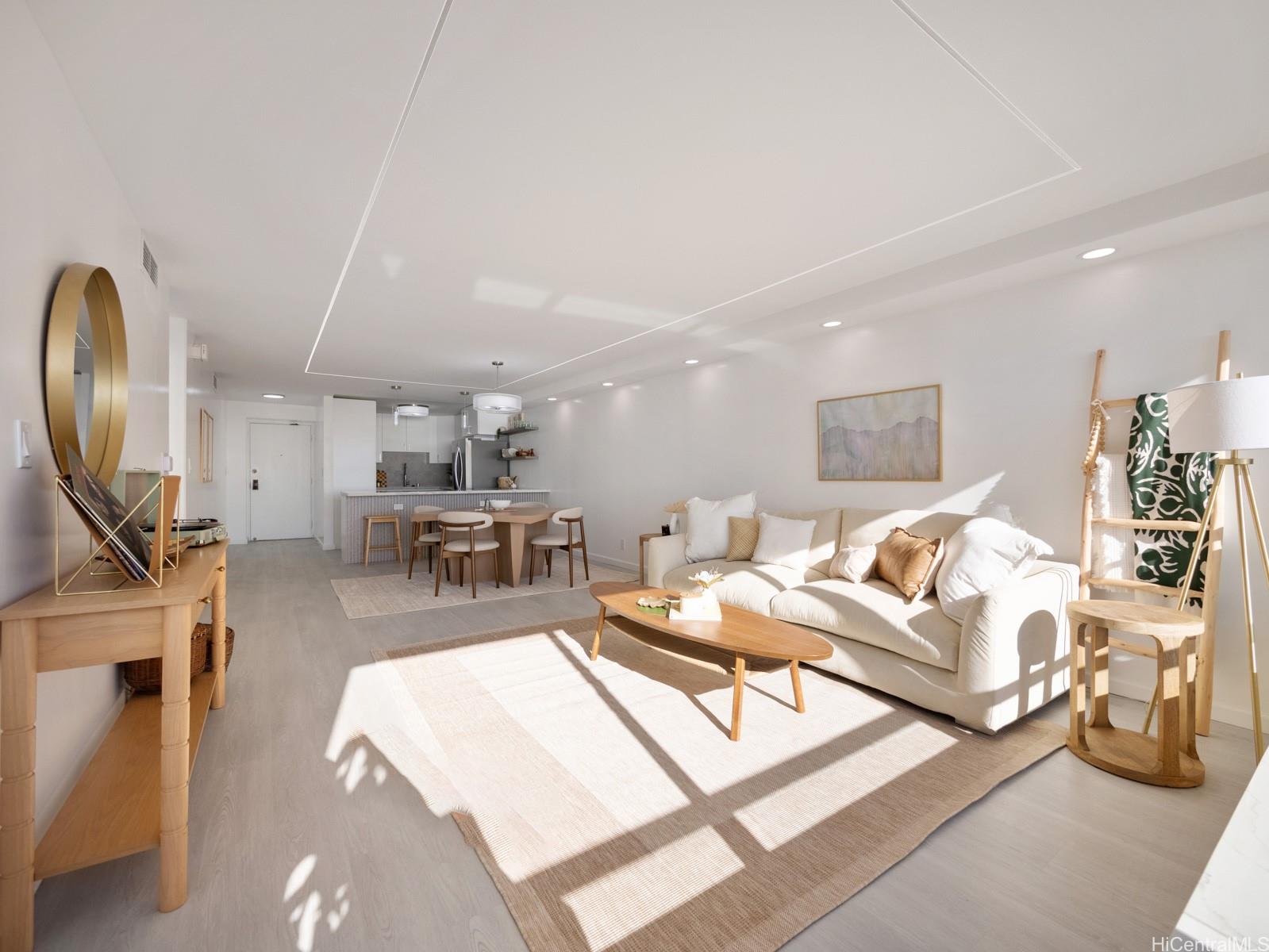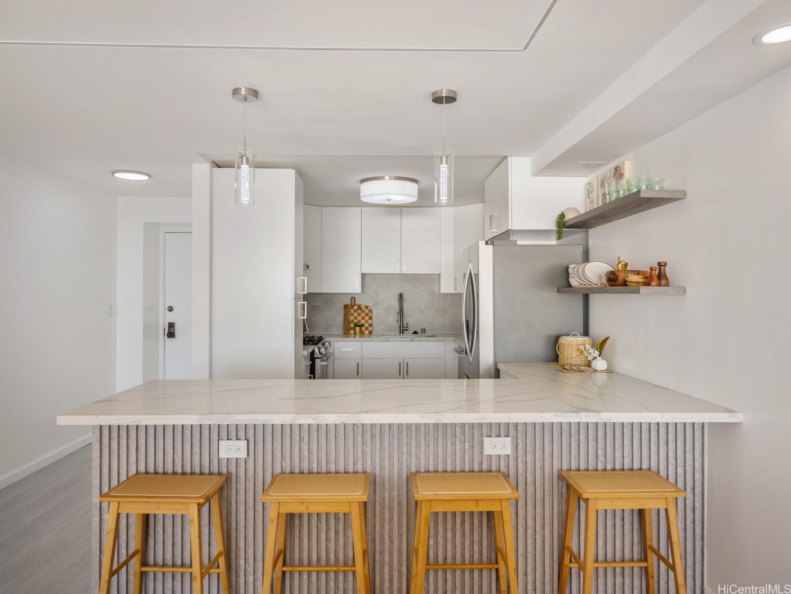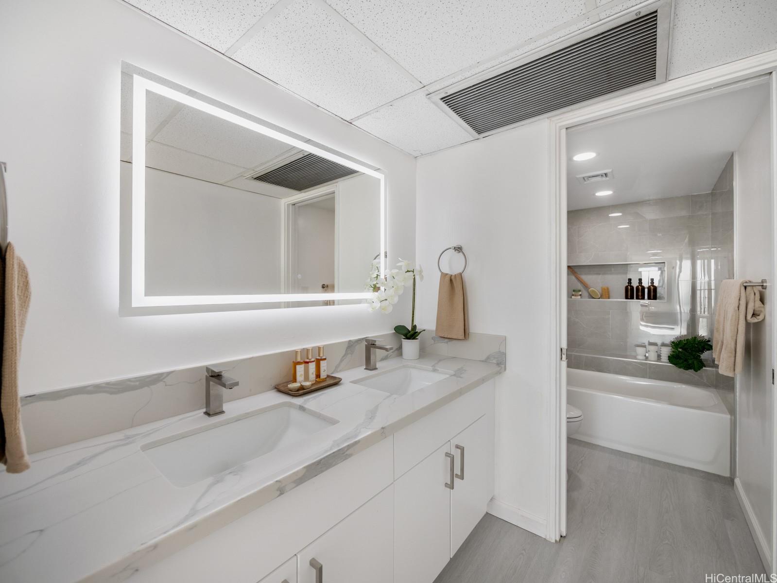 Additional conveniences includes 24hr security, covered parking, and in an unit washer/dryer. Experience the perfect blend of luxury, comfort, and prime location. Listing by: Compass (808) 386-4487