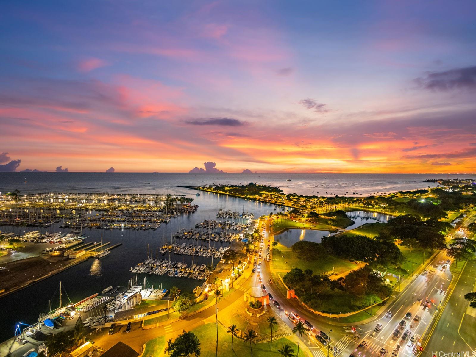 Welcome to this fully remodeled Yacht Harbor Towers unit, where luxury meets breathtaking beauty. This modern 2-bedroom, 2-bathroom unit offers sweeping, panoramic views of the ocean, colorful sunsets, and the yacht harbor. Situated just steps away from the Ala Moana Shopping Center, beach parks, and an array of dining options, this residence captures the essence of convenience and style.