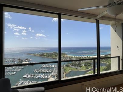 Experience the best of Honolulu living in this exquisite high-floor unit at Yacht Harbor Towers, conveniently located near Ala Moana Shopping Center and just minutes from Waikiki. This spacious 2-bedroom, 2-bathroom residence offers breathtaking ocean, marina, and city views, creating a serene and picturesque backdrop for your home.