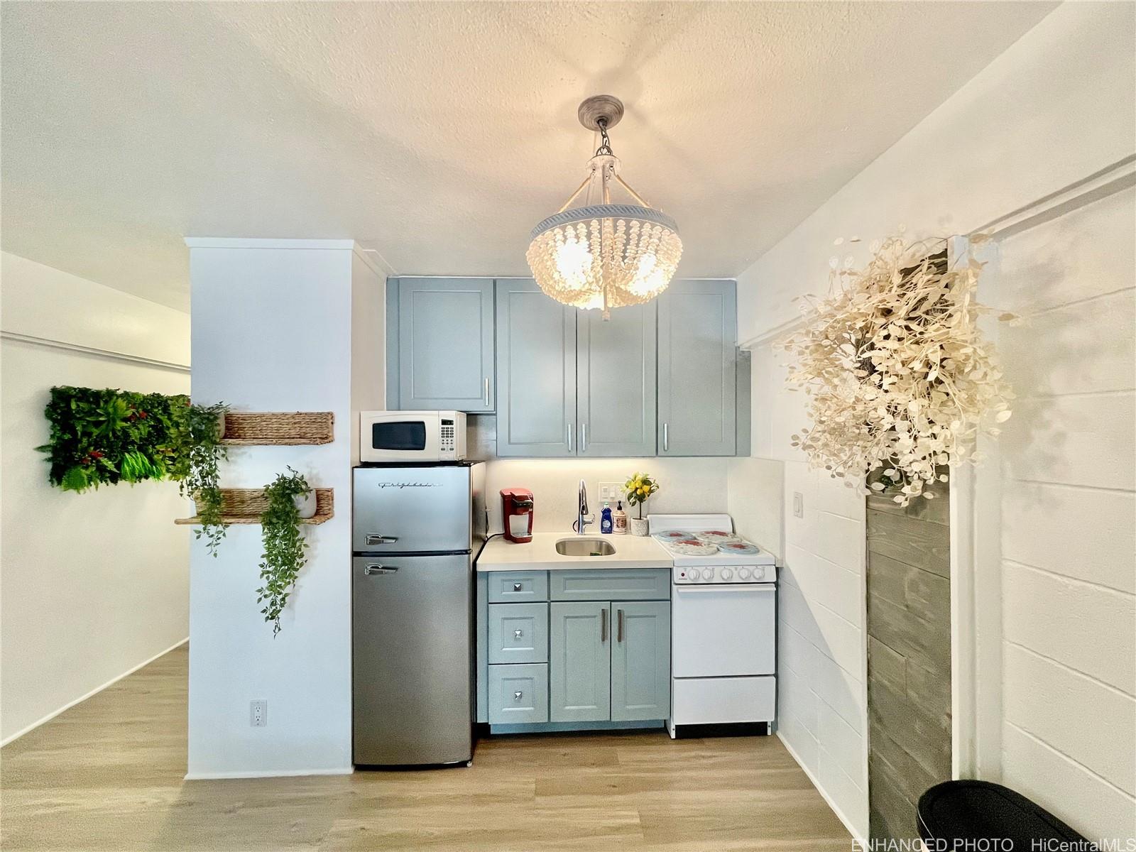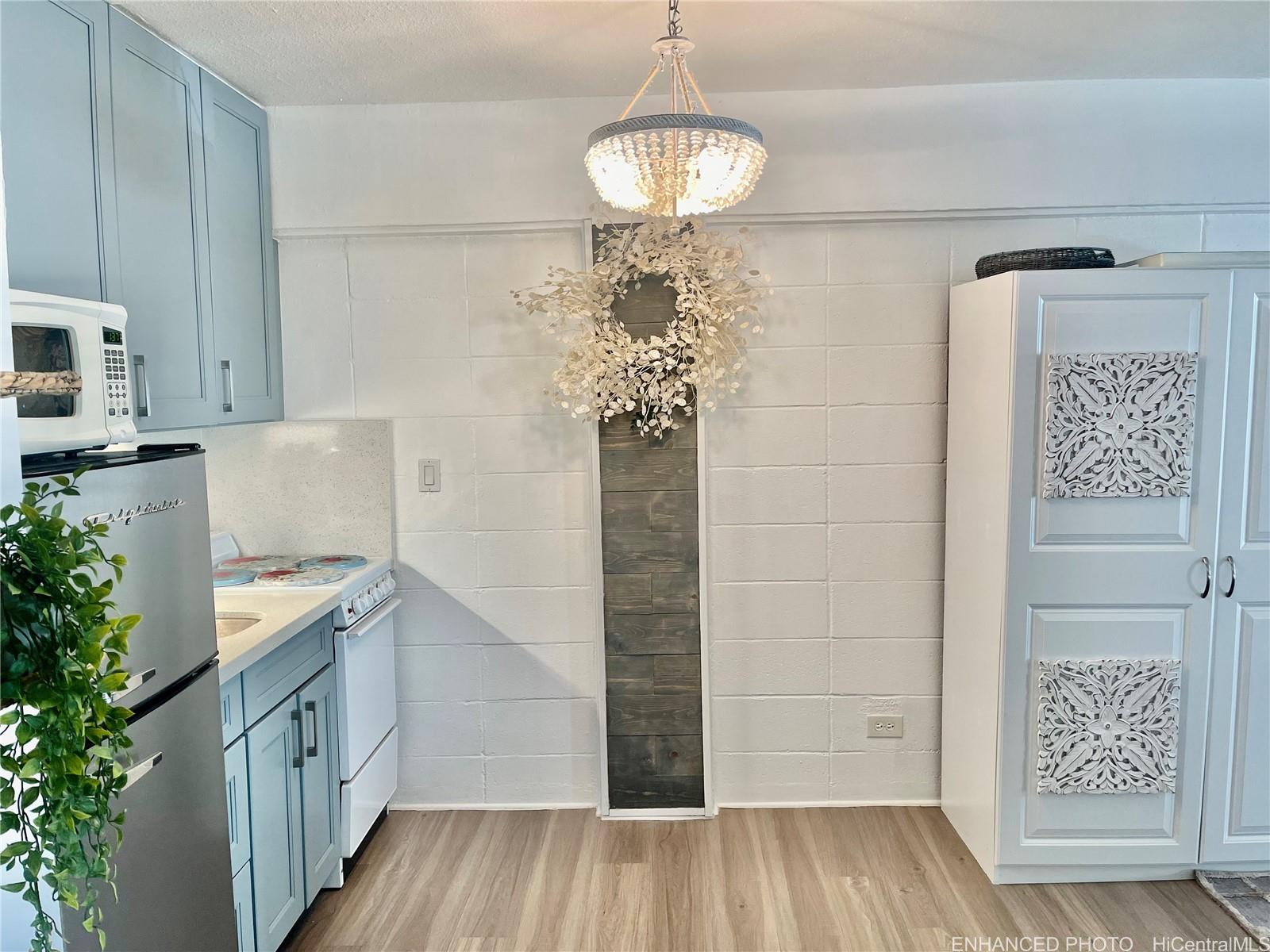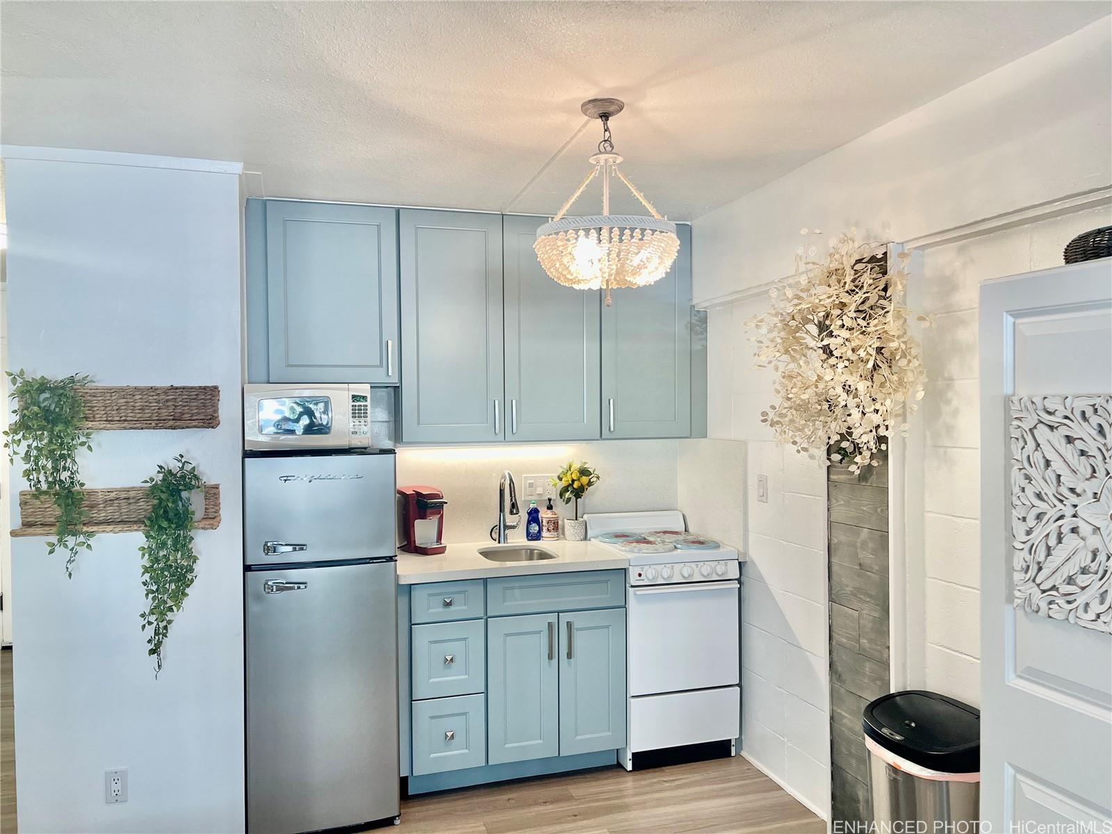 string(1204) "RARE HAWAII STYLE INDOOR/OUTDOOR LIVING ! LARGE OPEN LIVING SPACES AND HUGE COVERED LANAI ! RENOVATED APT. Preferred, corner apt. a in quaint Makiki Boutique building surrounded by single family homes and condos. Apt has a townhouse feel with EASY access directly to your end unit's front door via 2nd floor staircase. X-LG covered lanai runs entire width of apt. with a privacy divider and relaxing treetop, city, mountain views. “Dine in” while dining out on the shaded lanai, meditate, exercise, or relax and surf the web. Roomy floor plan has just under 500 Sq. ft. total combined indoor/outdoor. High ceilings with floor to ceiling windows. Soft blue hued wooden kitchen cabinets, White Quartz countertops & back splash, Vinyl plank flooring, wall mirrors.Painted & re-textured ceiling (No popcorn). X-Lg. bathroom w/storage cabinet, re-glazed bathroom tiles w/a combo shower and Zen soaking tub.Detached wardrobe armoire.Swim at the pool while doing laundry nearby. Air conditioner. Near major bus lines, Punahou school, UH, Ala Moana shopping, downtown.No assigned parking.Street parking only.High owner occupancy.Res.manager.Pets Cat/bird ok verify.Enhanced photos. 1031 Ex. See UPGRADES list"