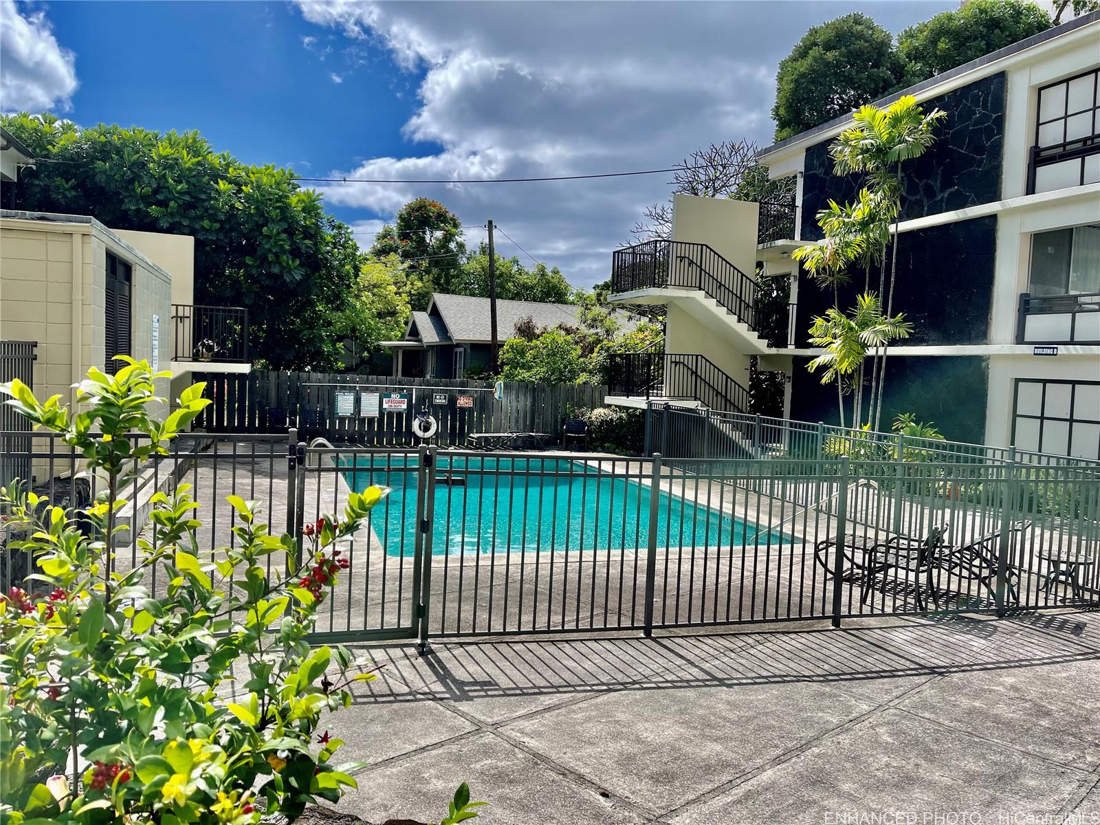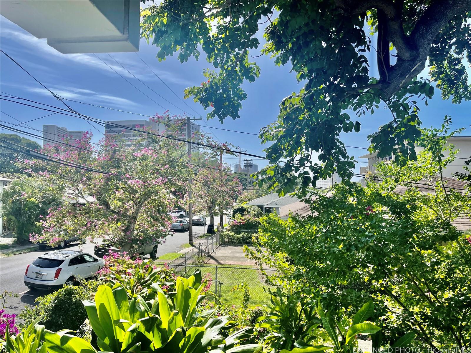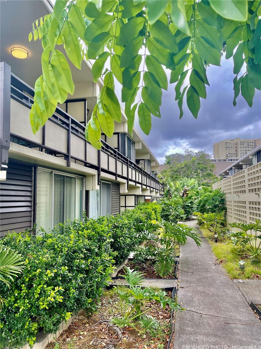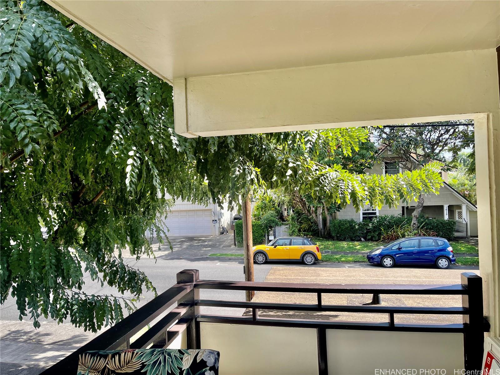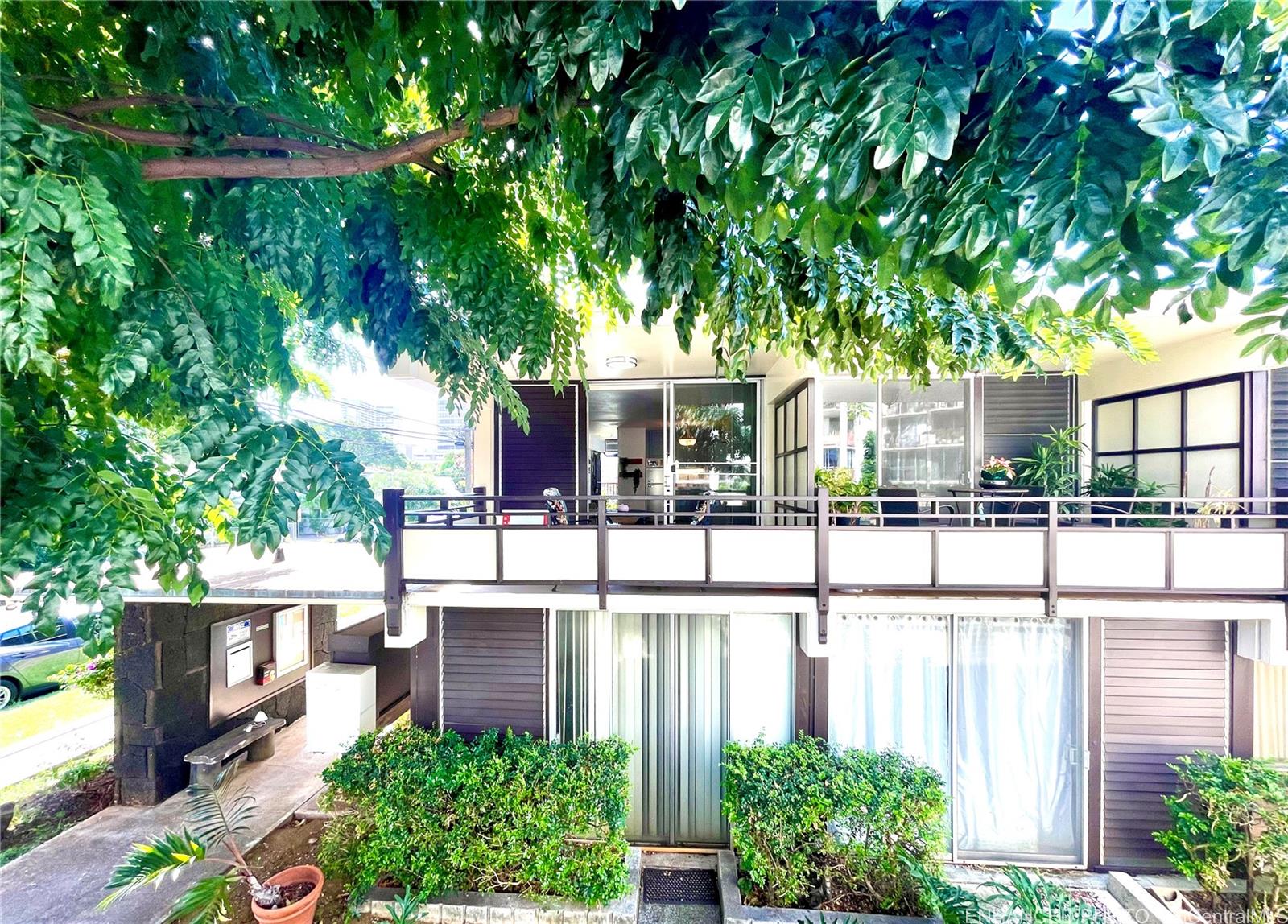 RARE HAWAII STYLE INDOOR/OUTDOOR LIVING ! LARGE OPEN LIVING SPACES AND HUGE COVERED LANAI ! RENOVATED APT. Preferred, corner apt. a in quaint Makiki Boutique building surrounded by single family homes and condos. Apt has a townhouse feel with EASY access directly to your end unit's front door via 2nd floor staircase. X-LG covered lanai runs entire width of apt. with a privacy divider and relaxing treetop, city, mountain views. “Dine in” while dining out on the shaded lanai, meditate, exercise, or relax and surf the web. Roomy floor plan has just under 500 Sq. ft. total combined indoor/outdoor. High ceilings with floor to ceiling windows. Soft blue hued wooden kitchen cabinets, White Quartz countertops & back splash, Vinyl plank flooring, wall mirrors.Painted & re-textured ceiling (No popcorn). X-Lg. bathroom w/storage cabinet, re-glazed bathroom tiles w/a combo shower and Zen soaking tub.Detached wardrobe armoire.Swim at the pool while doing laundry nearby. Air conditioner. Near major bus lines, Punahou school, UH, Ala Moana shopping, downtown.No assigned parking.Street parking only.High owner occupancy.Res.manager.Pets Cat/bird ok verify.Enhanced photos. 1031 Ex. See UPGRADES list Listing by: Help-U-Sell Honolulu Prop. (808) 321-0991
