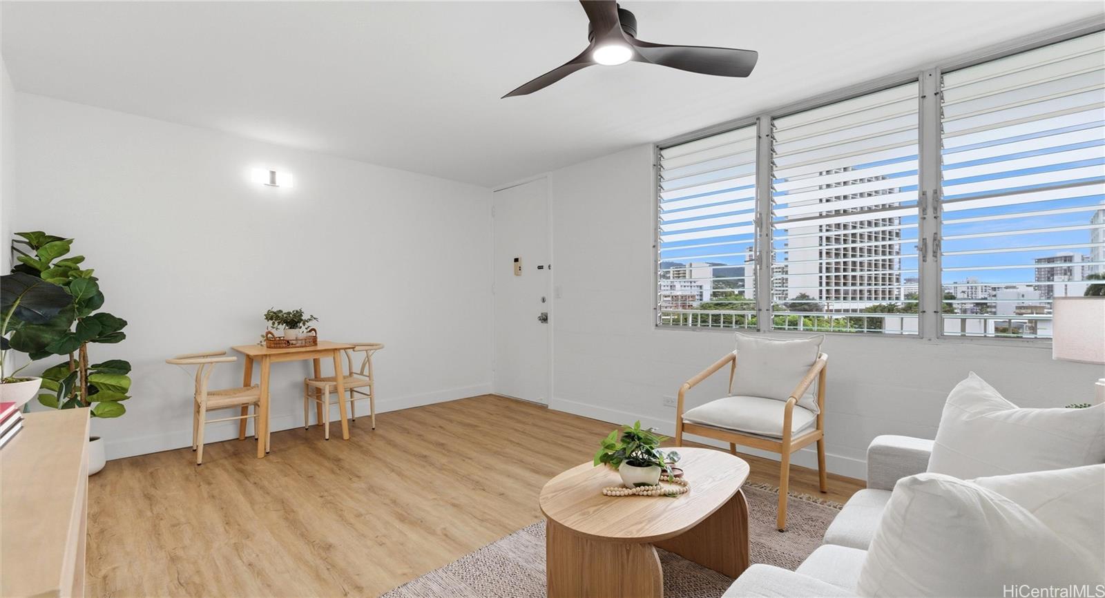 Featuring 561 SqFt of thoughtfully updated living space, this unit boasts brand new laminate flooring, chic finishes, and a spacious private lanai with an enjoying view. Situated in a secured, pet-friendly building in the heart of Makiki, you are just minutes away from Ala Moana Center, Ward Village, Waikiki, and freeway access. Includes one secured covered parking stall. Don't wait! See your future home today! Listing by: eXp Realty (808) 990-3443