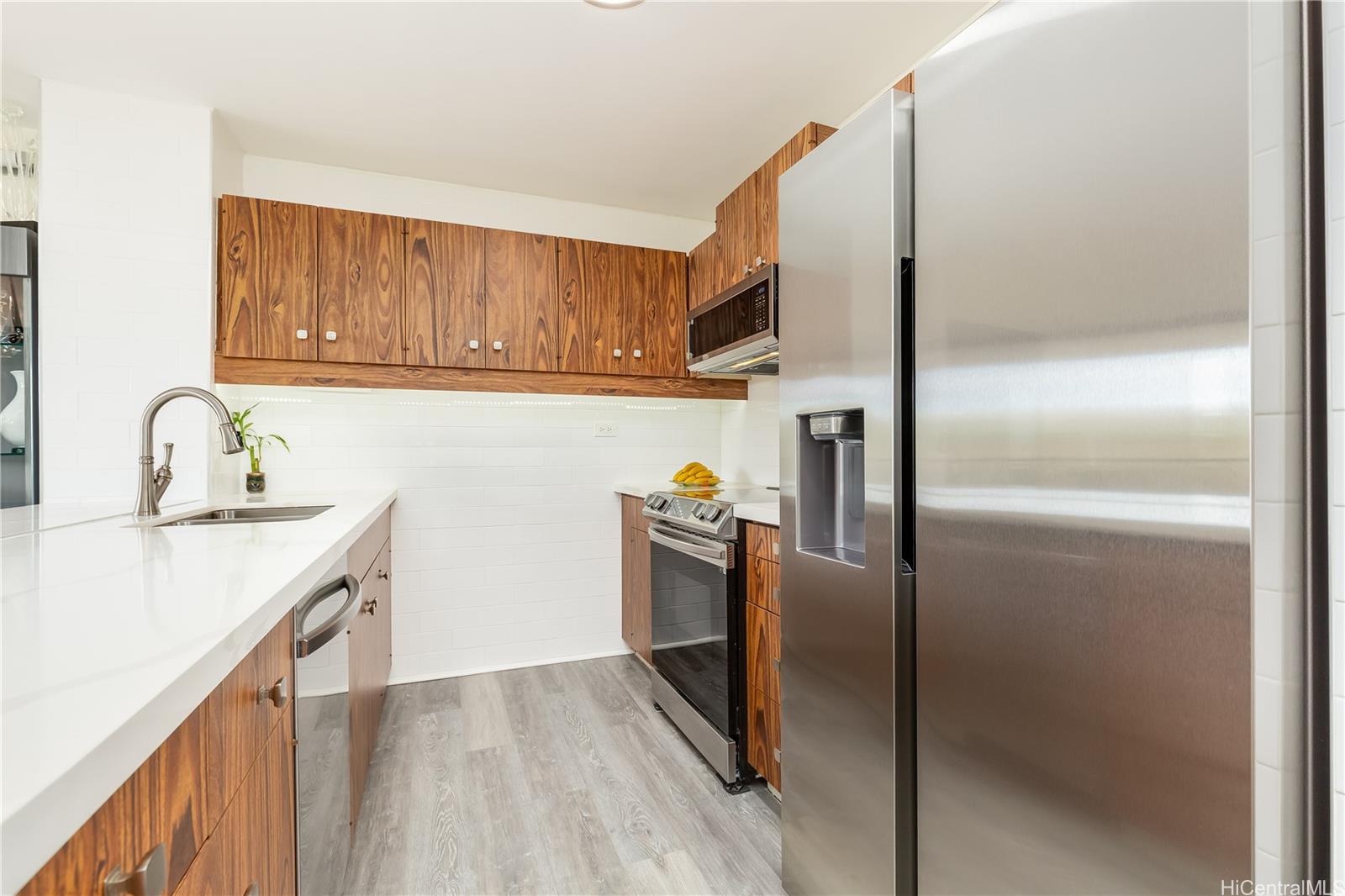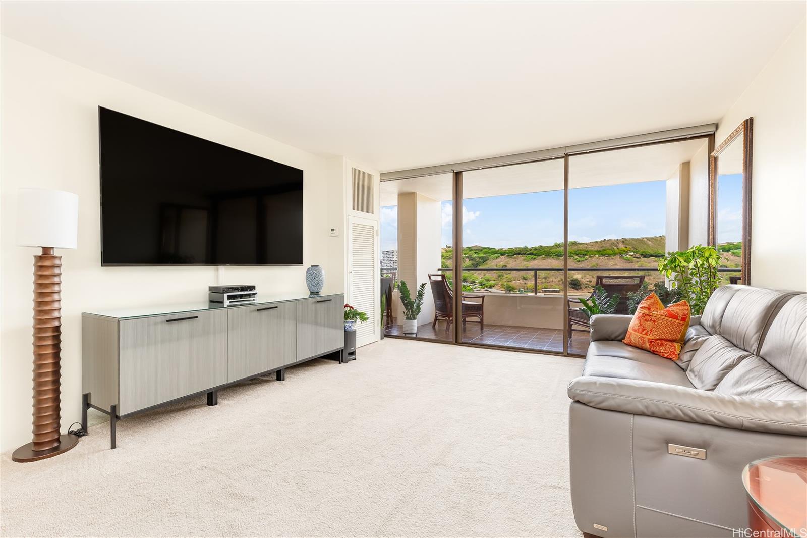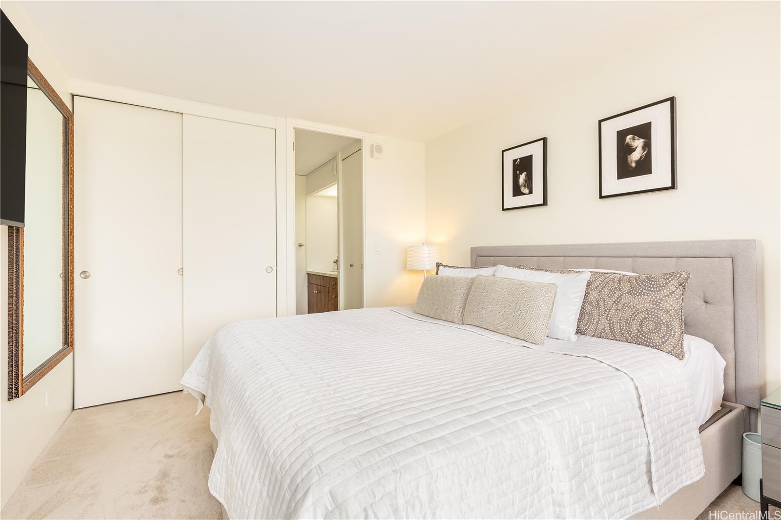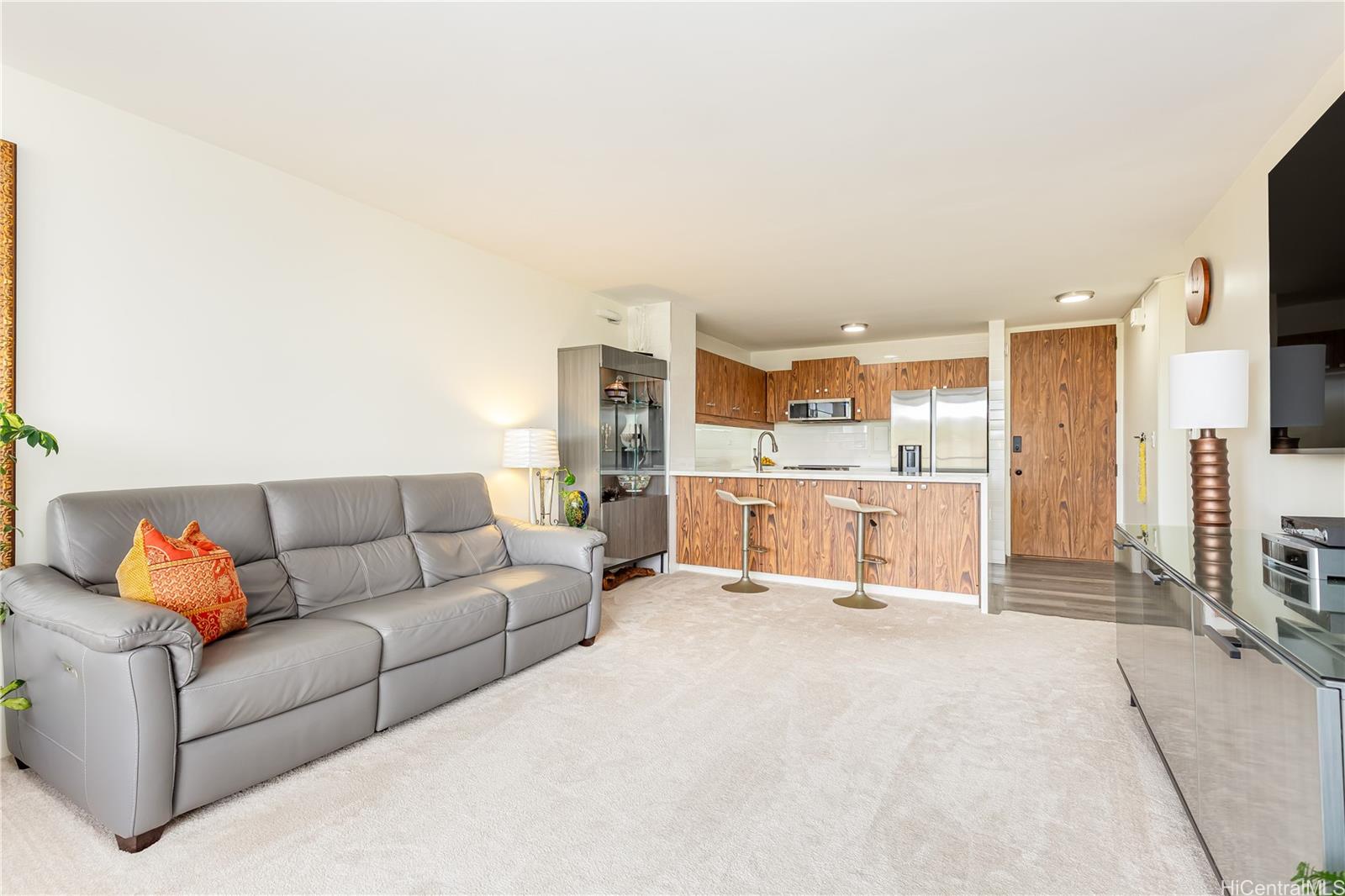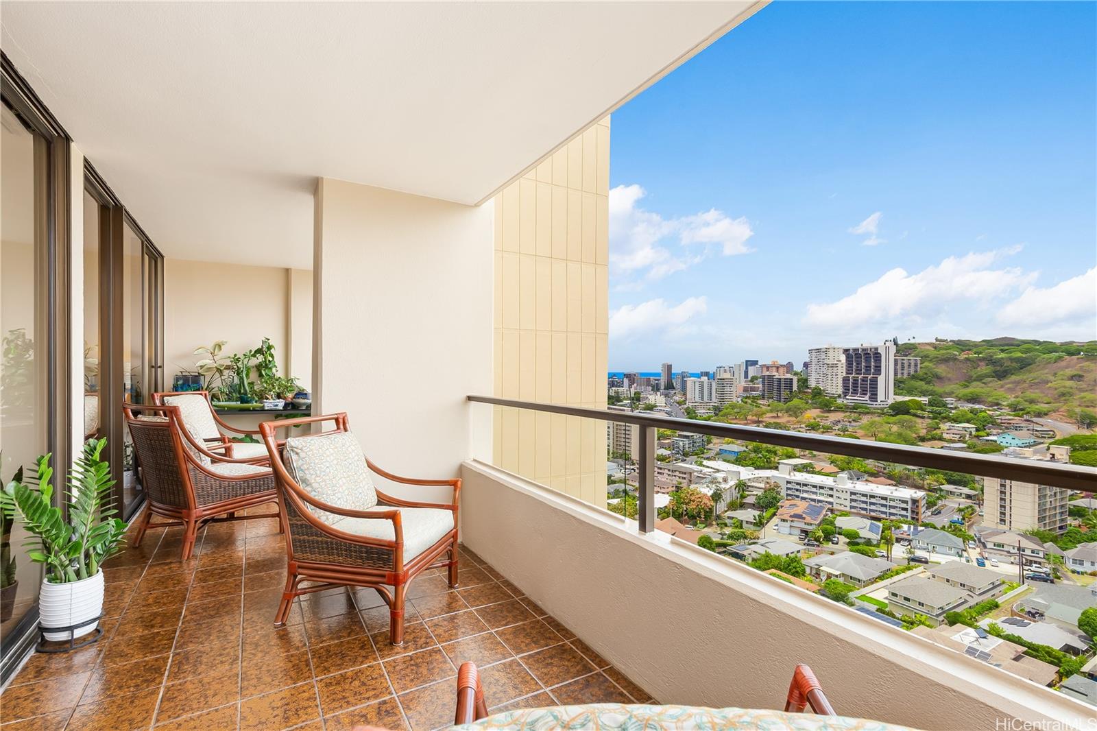 Experience stunning panoramic views of Punchbowl from your large covered lanai at Mott-Smith Laniloa #2304! This spacious 644 sqft 1-bedroom, 1-bath unit with 1-covered parking stall features an open floor plan with abundant natural light and cool mountain breezes. Enjoy a wall to wall 175 sqft covered lanai perfect for outdoor dining, relaxing, and taking in sweeping views of the city, ocean, and lush mountains. Recently renovated with quartz countertops, bar seating, modern stainless steel appliances, vinyl flooring, tiled walk in shower with glass sliding door, newer stackable laundry inside closet, central air conditioning, and wall mounted mirrors and extra large TVs for the new buyer to keep. This grand well-maintained building offers resort-style amenities including a new swimming pool & jacuzzi, tennis courts, BBQ areas, 24-hour security, and tons of guest parking. Conveniently located in the heart of Makiki near downtown, UH, schools, and freeway access for easy commuting. Don’t miss this incredible opportunity to soak in the views in a desirable building with a prime Honolulu location. Schedule your showing today! Listing by: Compass (808) 400-7007