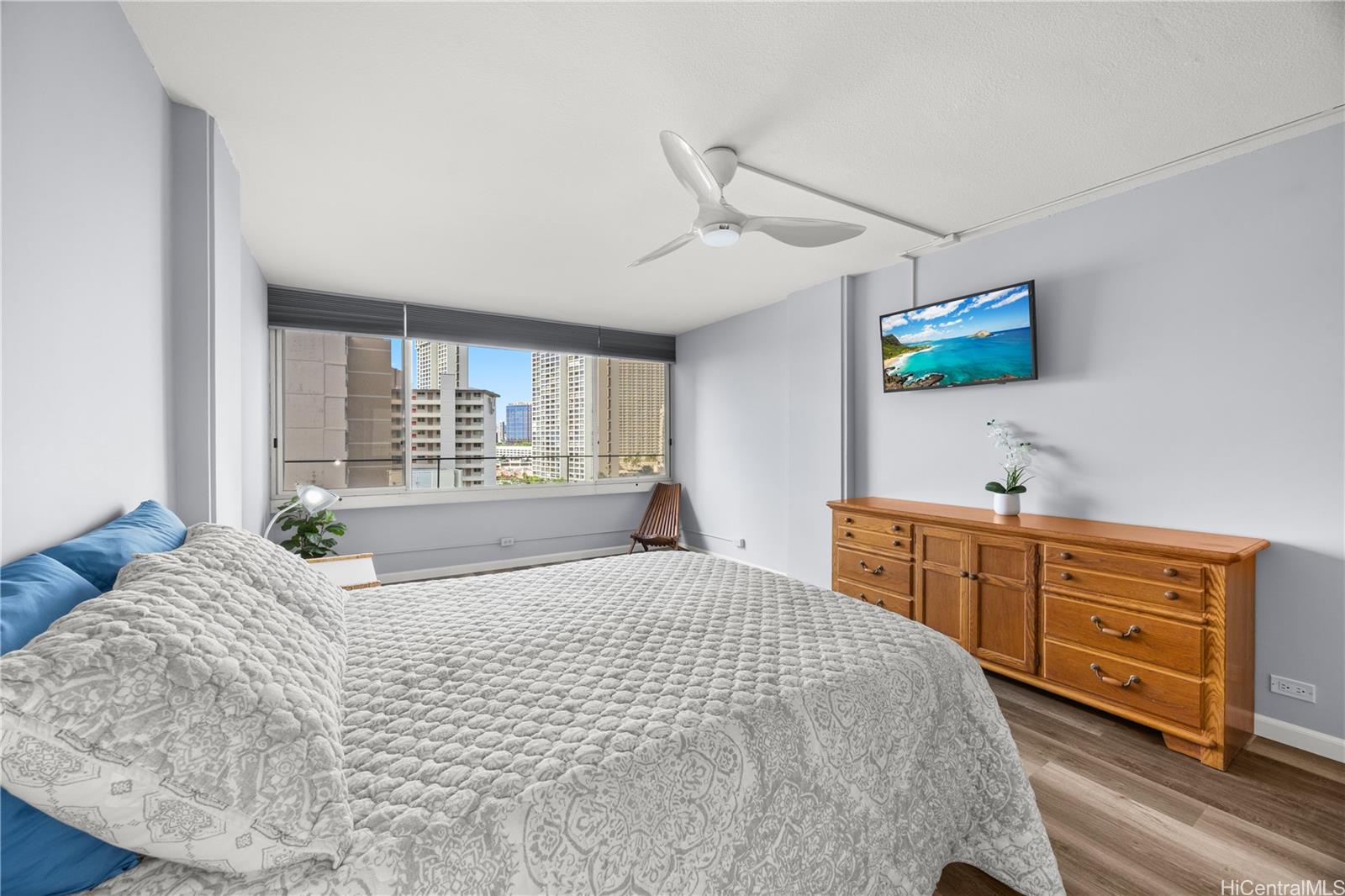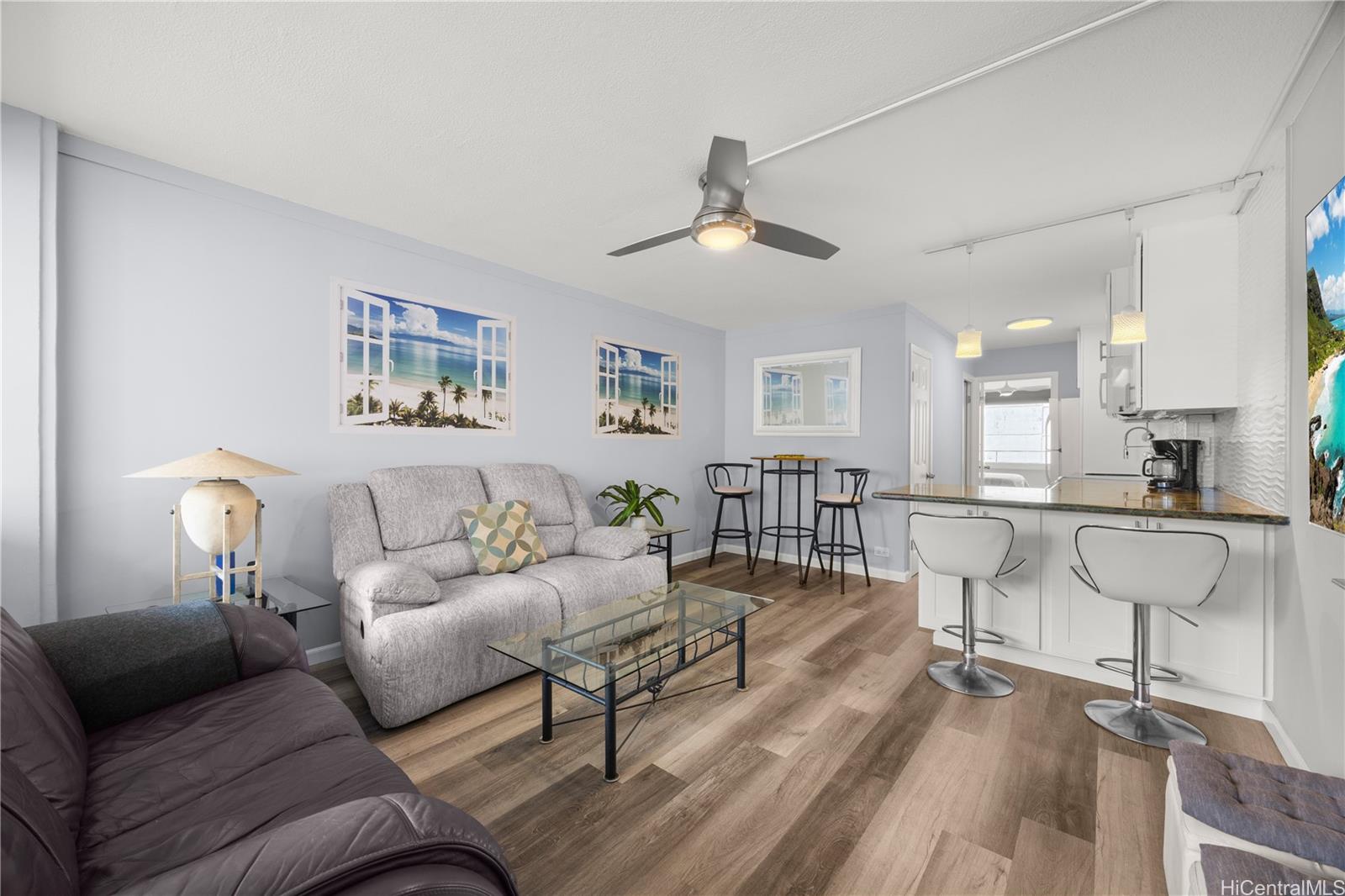 string(1076) "Turn-Key and Completely Furnished! This 1 bedroom, 1 bath condo features clean, stylish lines using contemporary pieces that embody a hint of luxury while providing practicality for everyday living. Meticulous detailing throughout keeps your smart devices and electrical cords organized and out of sight, while wall mounted TVs and vanity mirror combined with ample cabinet space keep your surface areas free from clutter. An expansive bedroom which has been extended to include the lanai brings you more usable space and a lovely peek-a-boo view of the ocean and harbor. The large windows in the living area are double paned with tint allowing you to enjoy the outdoor beauty without sacrificing all of your privacy. Treat yourself to lounging downstairs while indulging in the salt water pool or access your surfboard or bicycle for a quick grab-n-go. Walking distance to the beach, Ala Moana Mall or stroll through Waikiki - this is Resort Style Living at it's best! Maintenance Fee includes: Co-Op property taxes, all utilities, internet and cable, sewer and water."