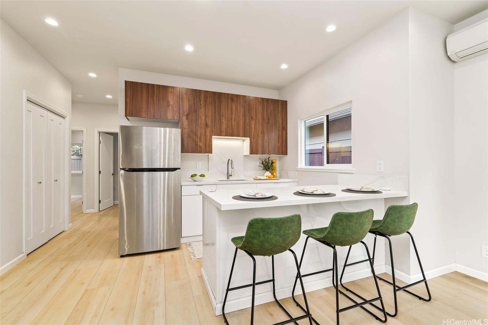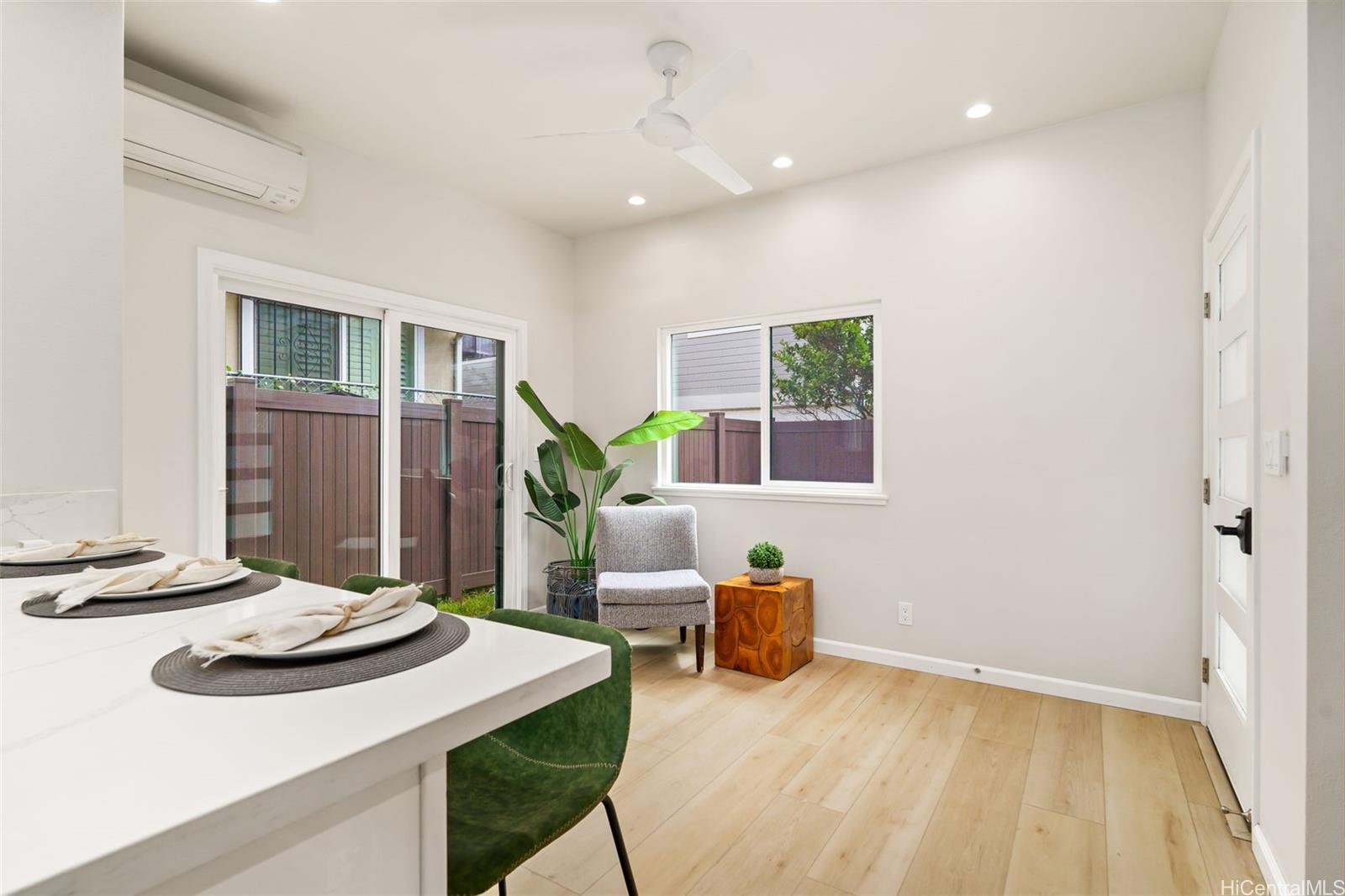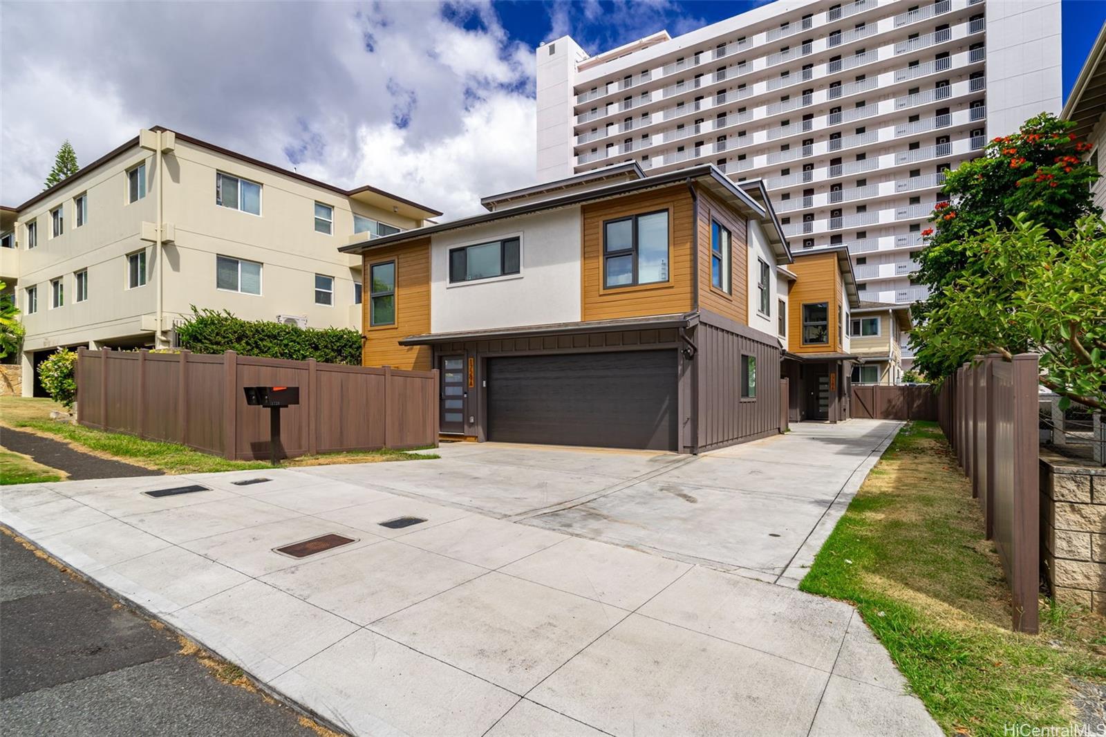 Experience modern living at its finest in this newly constructed home at Villas at Keeaumoku. With its sleek architecture and contemporary design, this property stands out for its clean lines and attention to detail. The main floor offers 3 bedrooms and 2 baths, with an open-concept kitchen, dining, and living area that’s perfect for gathering and entertaining. Large windows invite plenty of natural light, and the layout is designed to take full advantage of cooling trade winds. Downstairs, the flexible 2-bedroom, 1-bath space provides additional living options, ideal for extended family or guests. The fully enclosed yard offers privacy and a serene space for outdoor activities, pets, or unwinding at the end of the day. Centrally located in Honolulu, this home is close to Downtown, Ala Moana, and excellent schools, providing both convenience and a sense of community. Listing by: eXp Realty (808) 725-2794