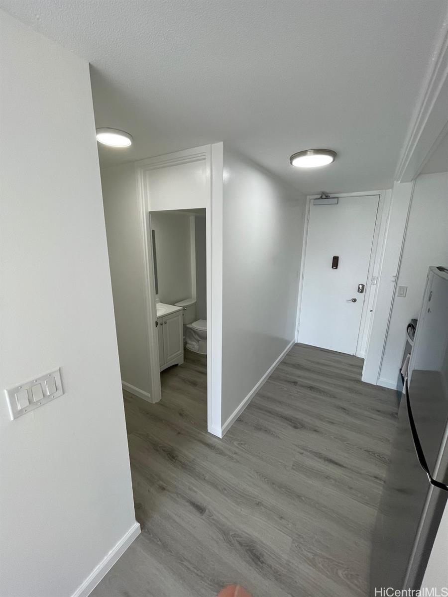 Located in front of Marina. Short-term rental is permitted. Freshly renovated flooring, kitchen, kitchen cabinet, bathroom, new refrigerator, bathtub, cabinet, closets, lights. Everything renovated. Convenient location to Ala Moana and Waikiki.