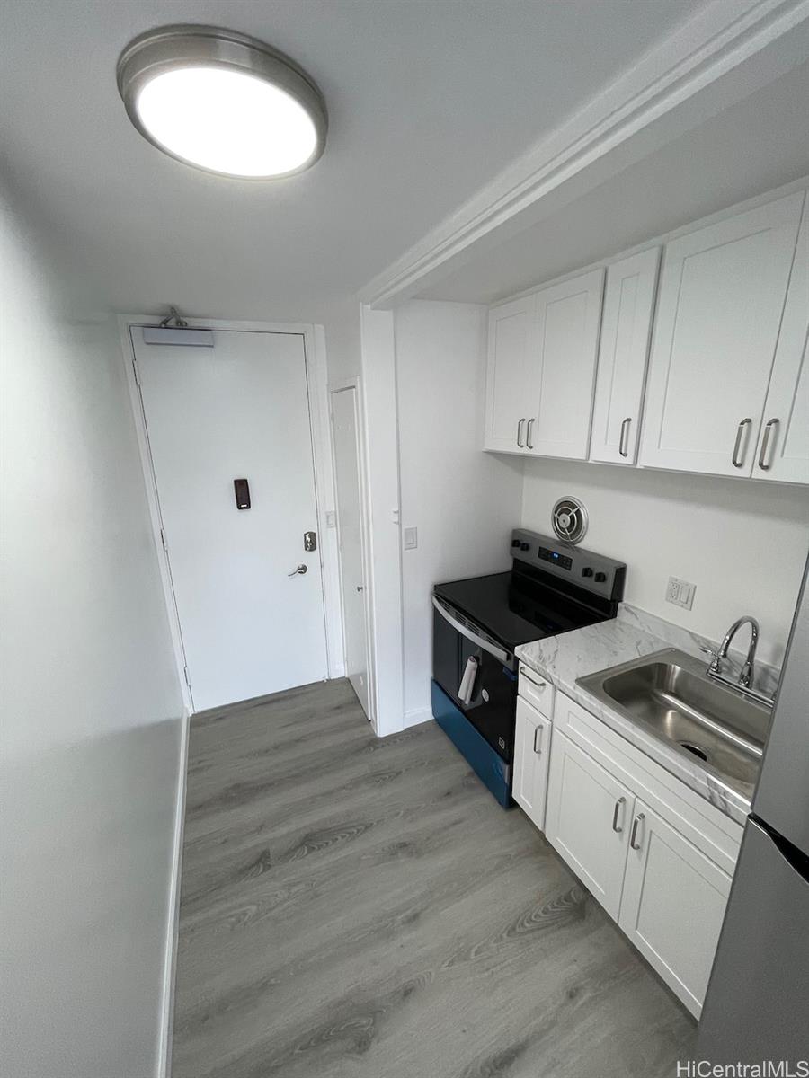 [0] => Located in front of Marina. Short-term rental is permitted. Freshly renovated flooring, kitchen, kitchen cabinet, bathroom, new refrigerator, bathtub, cabinet, closets, lights. Everything renovated. Convenient location to Ala Moana and Waikiki.