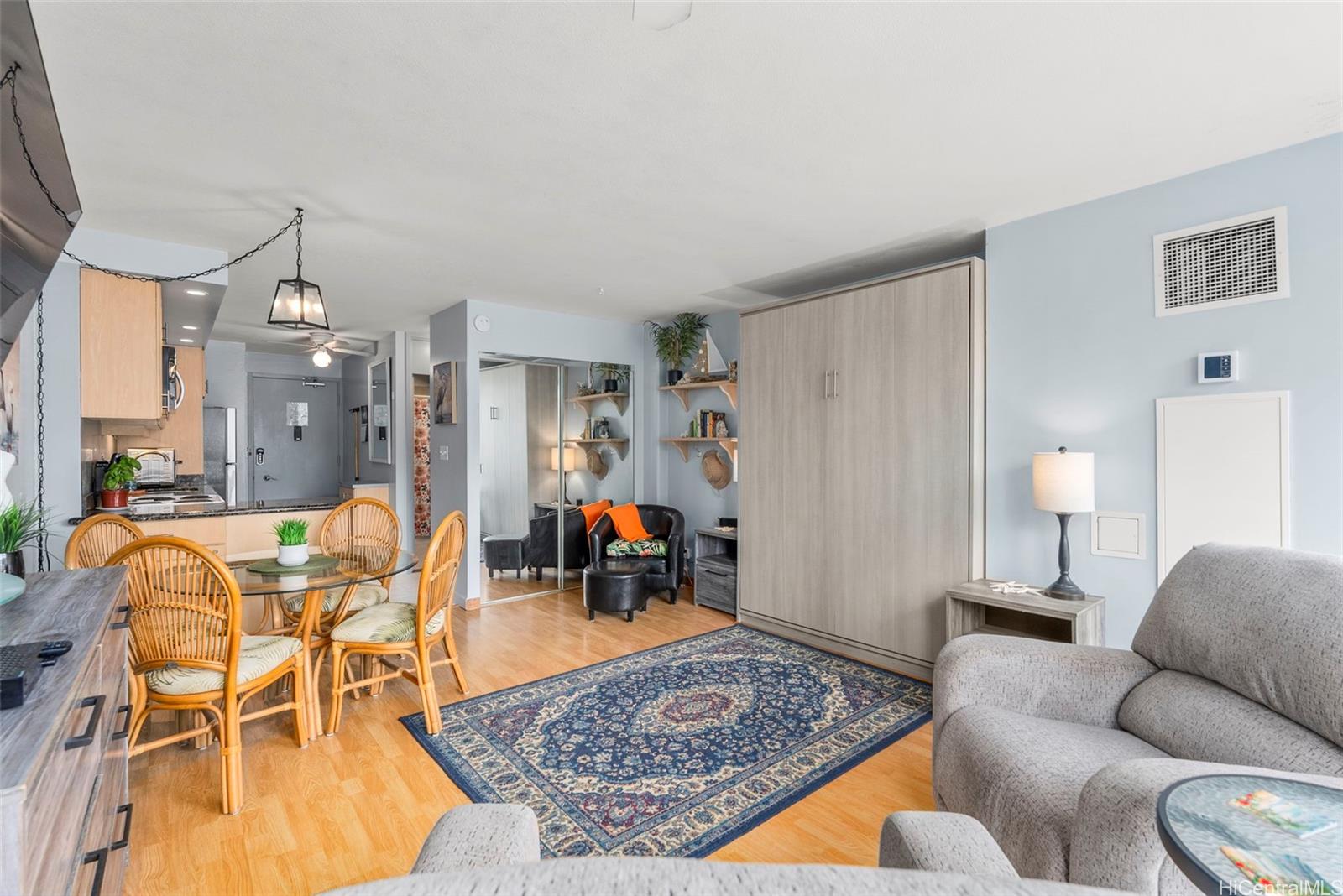 [0] => NEW LISTING!! Enjoy island living in this well-appointed studio/1 bath unit at Ilikai Marina. Take in peaceful city & mountain views and cool trade winds from your private lanai—your own serene retreat in the heart of Waikiki. The unit features an updated kitchen and bathroom, hard surface flooring throughout, and a modern Murphy bed for efficient, flexible use of space. Unbeatable location close to beaches, dining, shopping, and all that Waikiki has to offer. Flexible to be a primary residence, second home, or investment opportunity. Must see to appreciate!