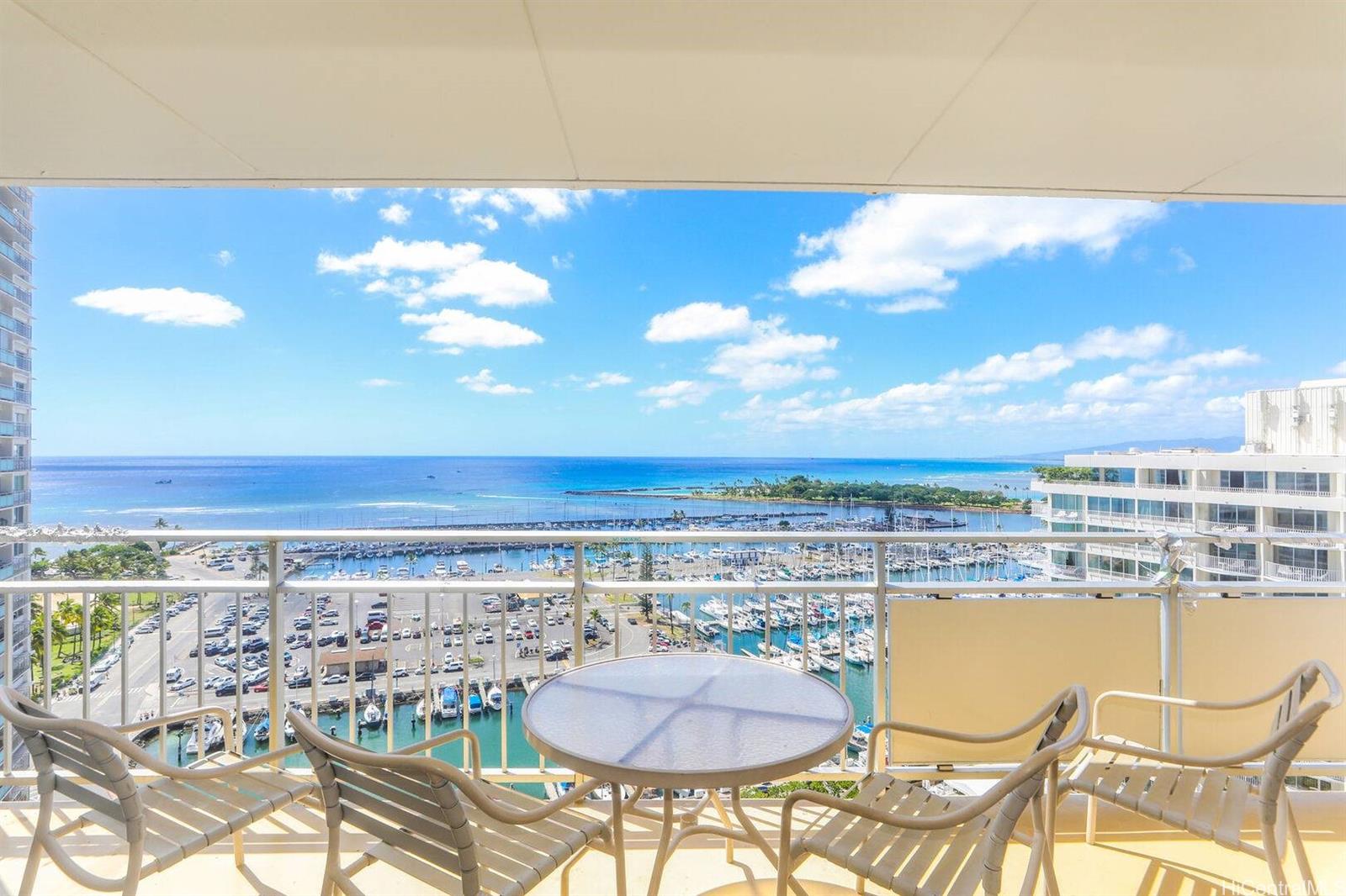 Experience resort-style living in this beautiful ocean & yacht harbor view unit at the Iconic Ilikai Apartment Building. Enjoy stunning views of the Pacific Ocean from your private lanai. A perfect place to relax and watch the ocean activities. Located at the beginning of Waikiki, this higher floor unit offers unmatched access to world-class beaches, dinning, shopping and the marina. Guests enjoy resort-style amenities, including 2 swimming pools, on-site dining options and easy public transportation to explore the surrounding areas. Featuring modern upgrades, this turnkey unit offers comfort, convenience and charm, easy beach and lagoon access only a few minutes away, and the vibrant energy of Waikiki just steps away. A rare opportunity to own a piece of paradise with one of the best ocean views in the building. Ilikai unbeatable location and recently refreshed interiors make it an ideal choice for both vacationers and business travelers seeking comfort and convenience in Waikiki. Listing by: Marina Hawaii Vacations (808) 781-1878
