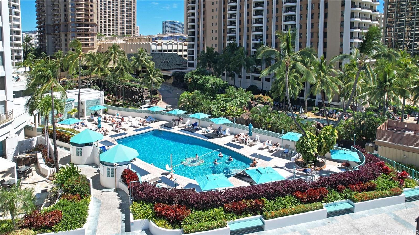 lanai. Updated kitchen with stainless steel appliances, granite countertops, 4 burners stove and ample cabinet space, perfect for preparing gourmet meals. Enjoy a relaxing soak in the bath as there is the bath tub in the unit. Must see the resort-like amenities including two pools., retails shops, beauty shop, and restaurants, If is located in Waikiki which is a famous neighborhood in Honolulu, known for its beautiful beaches, luxury resorts, and vibrant nightlife. Listing by: Locations LLC (808) 735-4200