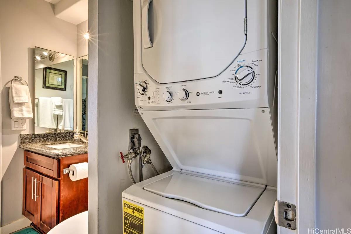 [0] => This large and desirable 14-stack unit in the Resolution Tower features an enclosed lanai. Fully Furnished, vacation rental(30days+) ready unit w/ a parking. The thoughtfully designed floor plan offers excellent bedroom privacy, with bedrooms separated by the kitchen and living area. Open, airy, and well situated, this unit is ideal for owner-occupants or investors. Enjoy close proximity to Ala Moana Shopping Center, Ala Moana Beach Park, Waikiki, dining, and public transportation. Discovery Bay offers secured entry and on-site amenities, providing comfort and convenience in one of Honolulu’s most accessible neighborhoods. The unit is 96.893% fee simple and 3.107% leasehold at $18.53/mo. The AOAO has the right to purchase the remaining leased fee interest before the lease ends on December 31, 2039.
