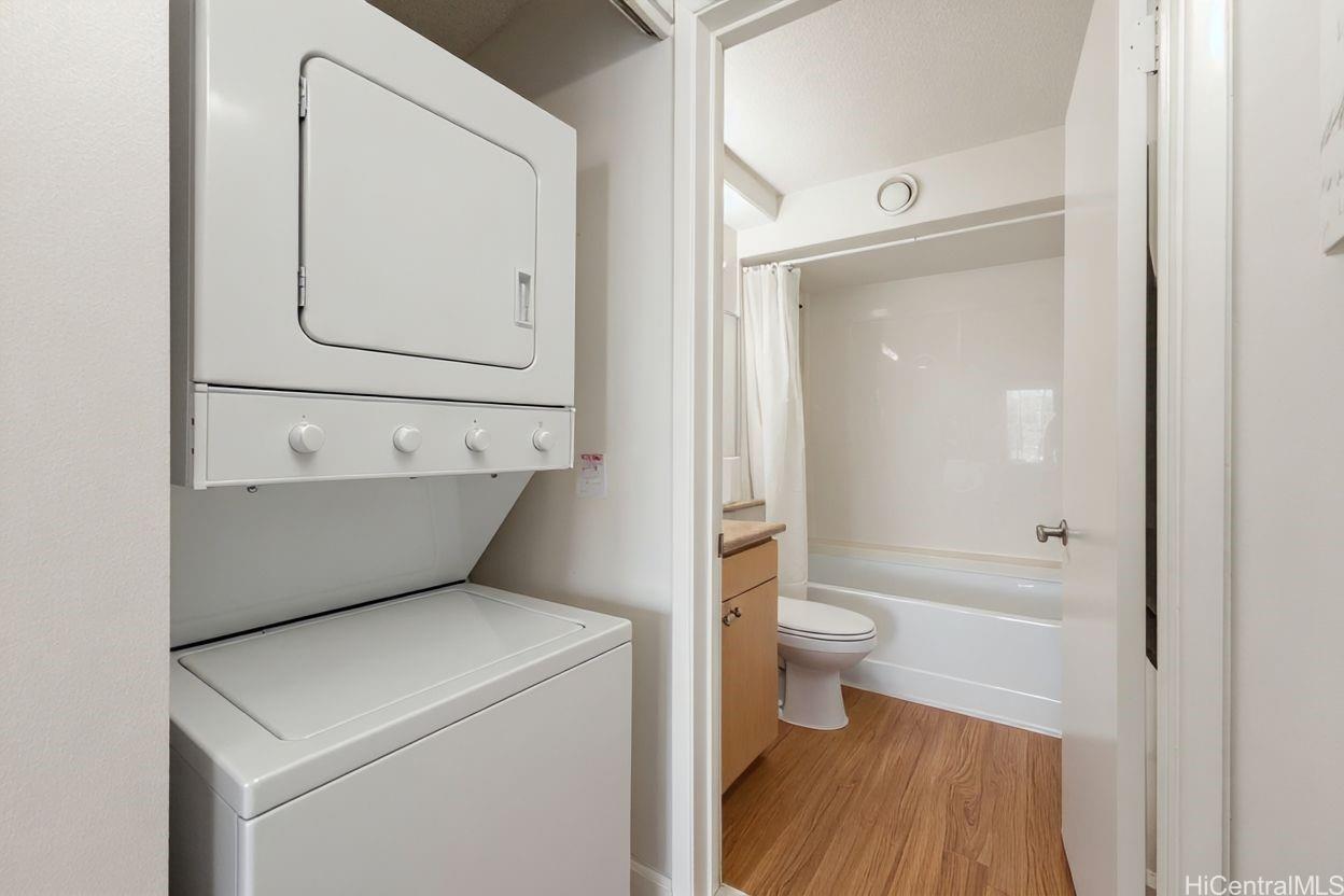 [0] => Great value for a good condition, fully furnished, move-in ready 1-bedroom in Discovery Bay’s Resolution Tower (Diamond Head side). This remodeled unit features laminate flooring throughout, an updated kitchen with dishwasher, central air conditioning, an in-unit washer and dryer, a spacious covered lanai, and 1 assigned parking stall. Located on the cooler, mountain side of the building, this unit offers comfortable and convenient island living with quick access to Waikiki and metro Honolulu. Amenities include a pool, spa, sauna, fitness center, recreation/sun deck, BBQ area, 24-hour security, and full-service management. Maintenance fee covers Wi-Fi, basic cable, hot water, sewer, and AC chiller. Convenient Waikiki location near Ala Moana Center, Ala Moana Beach Park, dining, shopping, and entertainment. The unit is 96.893% fee simple with the AOAO holding both the right and obligation to acquire the remaining 3.107% leasehold interest by December 31, 2039. Lease rent is $37.87/quarter or $12.62/month.