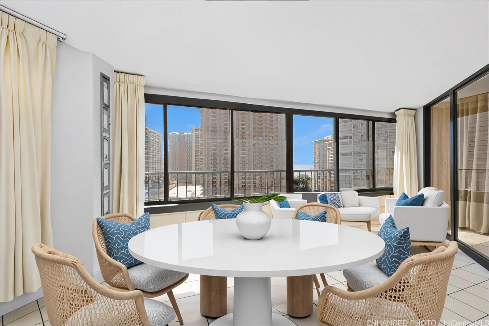 Welcome to Discovery Bay 2014 - generously sized 2BR 2BA 1 parking ~1,131 sf including an enclosed lanai — delivers space, location, and upside on the Ala Moana end of Waikiki. This high-rise residence enjoys partial ocean & marina views. The interior is largely original and tenant-occupied, offering a rare value-add/fixer opportunity to reimagine the layout, modernize finishes, and unlock potential in a building prized for convenience. Discovery Bay provides resort-style amenities: outdoor pool, whirlpool, fitness rooms, BBQ patio, sun deck, secured entry, 24-hour security, on-site management, and commercial conveniences at street level. Unbeatable access to Ala Moana Center, Waikiki beaches, surf breaks, lagoon/marinas, dining, and all the energy of Waikiki - your chance to live, invest, or redesign in a prime Honolulu location. The apartment unit is 96.893% fee simple and 3.107% leasehold with the option/right to purchase the remaining leased fee interest prior to expiration of lease; the lease rent is known for remaining term of the lease and the price of the remaining leased fee interest will be the appraised value at time of the purchase. Visit Discovery Bay Hawaii website. Listing by: Island Dragonfly (808) 343-9526
