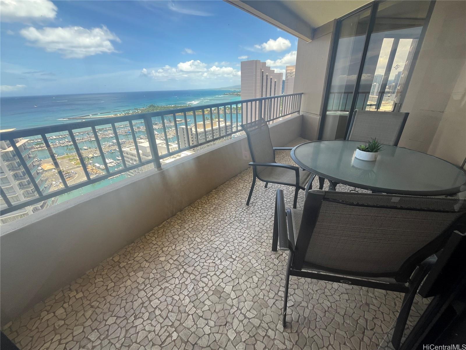 string(1165) "High-floor. best ocean-facing -11 stack, 2-bed/2-bath unit offers sweeping ocean, harbor and sunset views from every room. Open layout flows to coverd spacious lanai perfect for relaxation. Secure 2nd floor parking included. Resort amenities (pool, spa, sauna, gym, BBQ deck) and prime location just steps from beach, shopping at Ala Moana Center, and Waikiki dining. Whether you’re seeking a long-term Honolulu home or a sophisticated investment near the beach and city-core, this unit delivers lifestyle, convenience and value. Don’t miss the opportunity to make it yours. Great lifestyle or investment opportunity. Fully Furnished, vacation rental (30days+) ready unit.