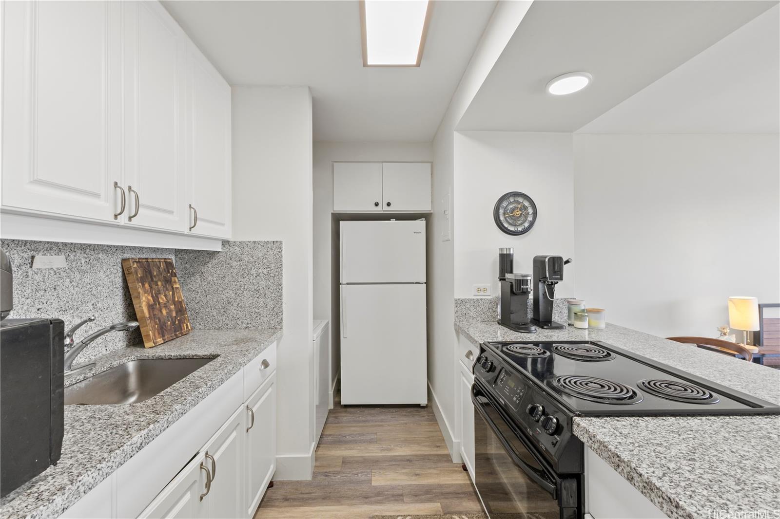 [0] => Rare high-floor studio in the iconic Discovery Bay! Unit 3905 in the Endeavor Tower offers the best of island living with sweeping water, city, and mountain views from the cool side of the building. Recently updated and fully furnished, this residence features luxury vinyl flooring, a full kitchen, in-unit washer/dryer, and one assigned parking stall. Enjoy amenities including a pool, spa, sauna, fitness center, BBQ areas, 24-hour security, and full-service management. WiFi and basic cable are included in the maintenance fee. Prime West-End Waikiki location near Ala Moana Center, Ala Moana Beach Park, and world-class dining and shopping. Don’t miss this opportunity—schedule your showing today! The unit is 96.893% fee simple with the AOAO holding both the right and obligation to acquire the remaining 3.107% leasehold interest by December 31, 2039. Lease rent is $22.82/quarter or $7.61/month.