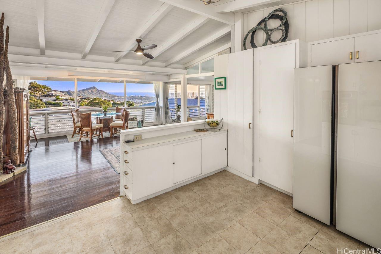 The Giving House - A truly rare offering on highly desired St. Louis Drive in Honolulu. Commanding sweeping ocean views from its prized east-west orientation, this exceptional residence is designed to capture natural light and refreshing trade winds throughout the day. Architectural surprises and thoughtful details are found throughout, adding warmth and character to every level. The flexible floor plan features 4 bedrooms and 2.5 baths upstairs, creating generous space for living and entertaining, while a separate one-bedroom, one-bath downstairs offers ideal potential for multi generation guests, or long-term rental income. Step outside to an abundant edible yard with mature plantings, offering both beauty and bounty. With versatility, view, and income potential combined in one property, this is truly the house that keeps on giving - a rare opportunity to own a distinctive island retreat in a highly desirable Honolulu location. Listing by: Coldwell Banker Realty (808) 284-6464