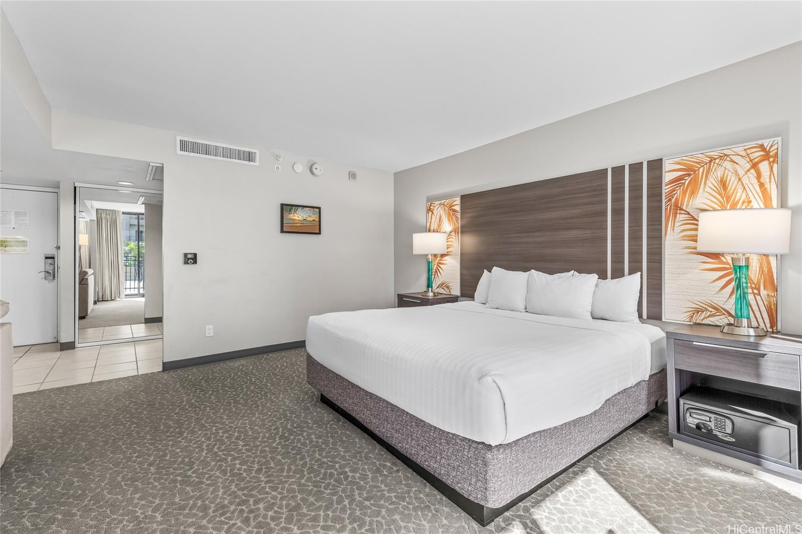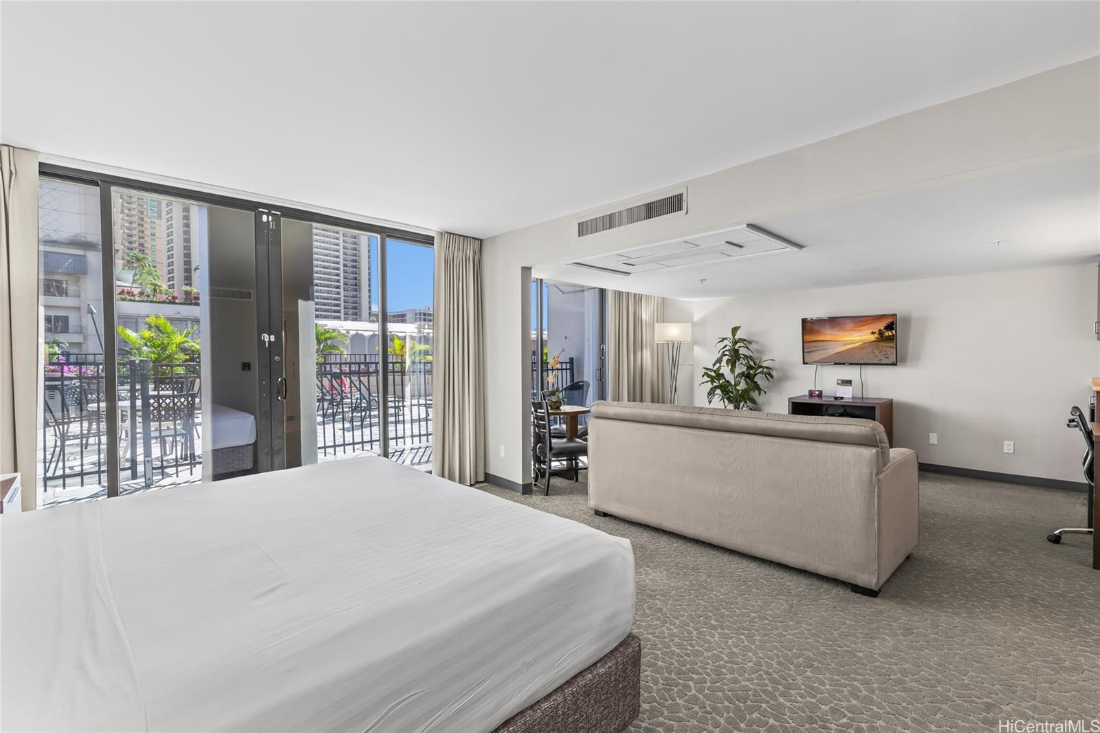 Palms at Waikiki #206 offers a rare opportunity to own a legal short-term rental in one of Waikiki’s premier condo-hotel destinations. This extra-large studio—approximately 550 sq. ft. of interior space—stands out with its generous layout and the added benefit of a dedicated parking stall, an uncommon advantage for STR properties in Waikiki. Situated on the 2nd floor (equivalent to the height of the 5th floor), this move-in-ready unit provides direct access from the lanai to the resort-style swimming pool and fitness room, creating a seamless indoor-outdoor experience for residents and guests. Perfect as an investment property or personal retreat, the unit features central air conditioning and is fully furnished for immediate use. All utilities are conveniently included in the maintenance fee, covering electricity, internet, hot water, sewer, and central AC—simplifying ownership and enhancing value. With its prime location across from Hilton Hawaiian Village and just moments from Waikiki Beach, shopping, dining, and island activities, this unit presents an exceptional blend of convenience, flexibility, and income potential in a highly desirable condo-hotel setting. Listing by: Coldwell Banker Realty (808) 781-5378