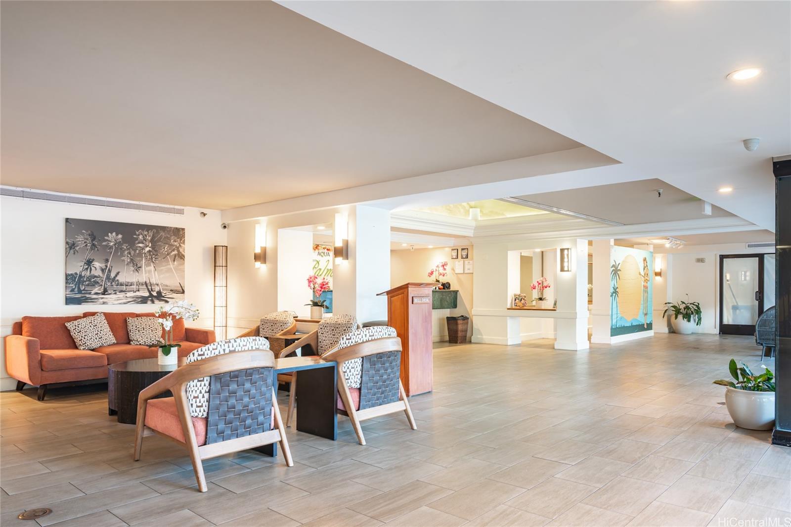 [0] => Experience paradise island living in this beautifully renovated studio at the popular Palms at Waikiki, one of Honolulu’s sought-after legal vacation rentals. This stylish unit offers vibrant views across Waikiki toward the iconic Diamond Head and ocean. Step inside to find a refreshed and contemporary space featuring updated finishes and a comfortable layout designed for relaxation. Premier location in Waikiki near Ala Moana Shopping Mall, beach, Fort DeRussy Park, Hilton Hawaiian Village, and so much more. Resort like amenities include pool, sundeck, BBQ area, fitness center, and more.