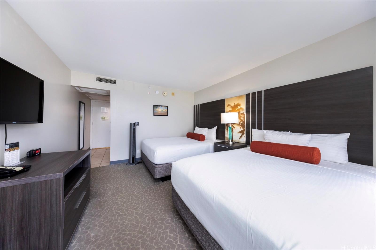 Palms at Waikiki is situated at the entrance of Waikiki in a superb "island lifestyle" location, nearby beaches, parks, shops, and restaurants. Inside this studio residence you'll find an updated island-modern design that includes a kitchenette, stone-tiled bathroom with a large vanity, built-in closet and cabinetry, and an outdoor lanai that looks toward the entrance of Waikiki with partial Pacific Ocean views. Well-kept on-site amenities include an exercise gym, swimming pool, barbecue and outdoor entertainment spaces. This exceptional location is positioned just blocks from Hilton Hawaiian Village's stunning lagoon, world-famous Waikiki Beach, boutique neighborhood shops, cafes, and more. Property is in the hotel rental pool. Inquire for investment performance. Listing by: Sachi HI Pacific Century Prop. (808) 596-8801