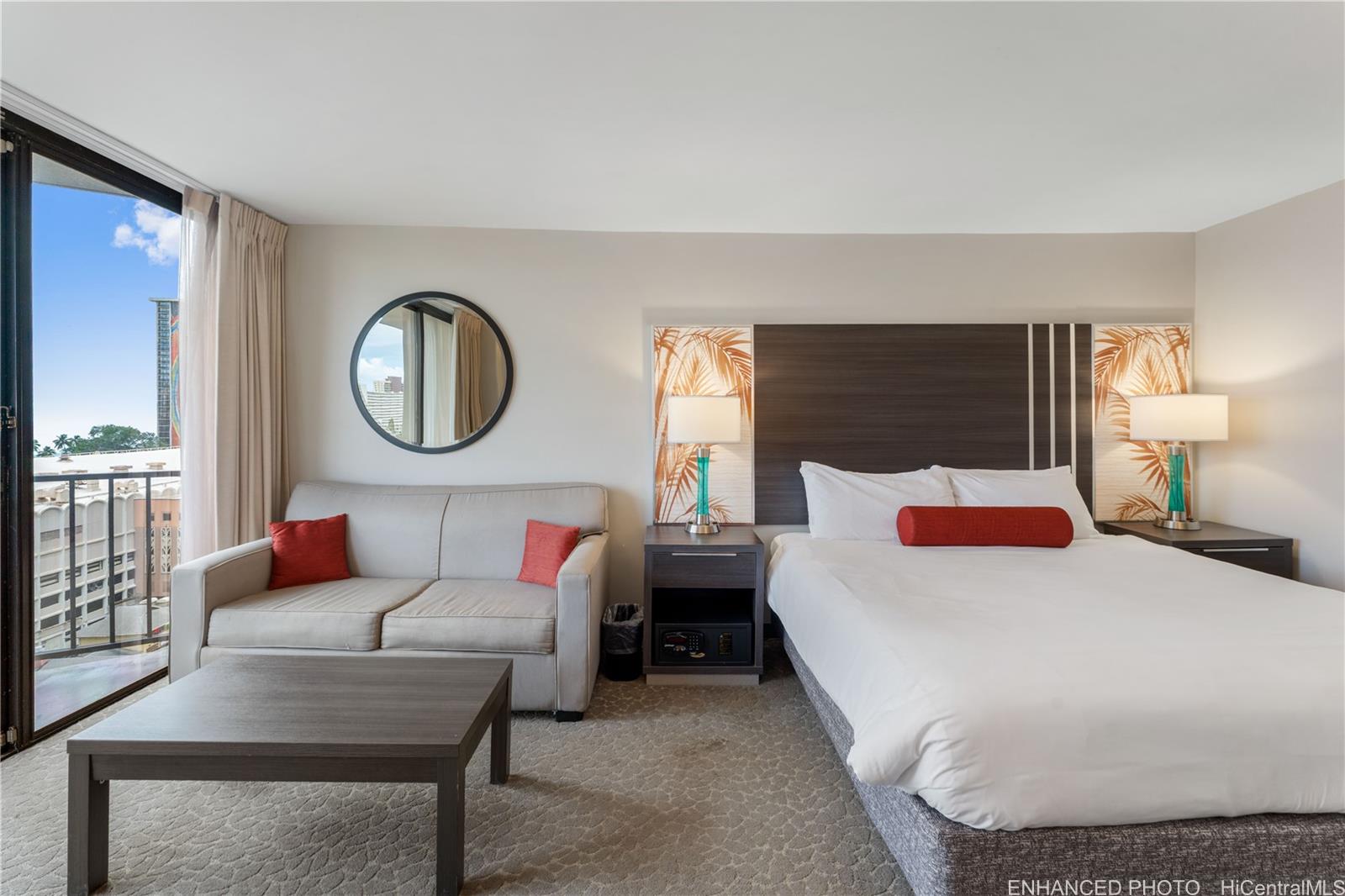 Unit 816 at the Palms at Waikiki offers a rare opportunity to own a legal, turnkey short-term rental with strong income history and deeded parking. One of the larger studio layouts in the building, this fully renovated unit is ready for immediate use and can be self-managed or placed into the hotel rental pool. The southeast-facing orientation captures views of Diamond Head, ocean, city Skyline, which consistently appeals to guests and supports strong nightly rates. The unit has a proven performance record, generating approximately $63,000+ in annual gross income with a 4.96-star rating, over 80 reviews, and roughly 90% occupancy. Renovated in 2020 as part of the hotel refresh program, the unit features custom upgrades that set it apart from standard inventory. Owners and guests enjoy access to quaint hotel amenities including a pool, BBQ area, fitness center, laundry facilities, front desk services, bell service, and 24-hour security. Located at the gateway to Waikiki and just blocks from Kahanamoku Beach, shopping, dining, and world-class resorts, this property offers flexibility for continued rental income, personal use, or future resale of a high-demand condotel with parking. Listing by: BHGRE Refined (808) 561-0391