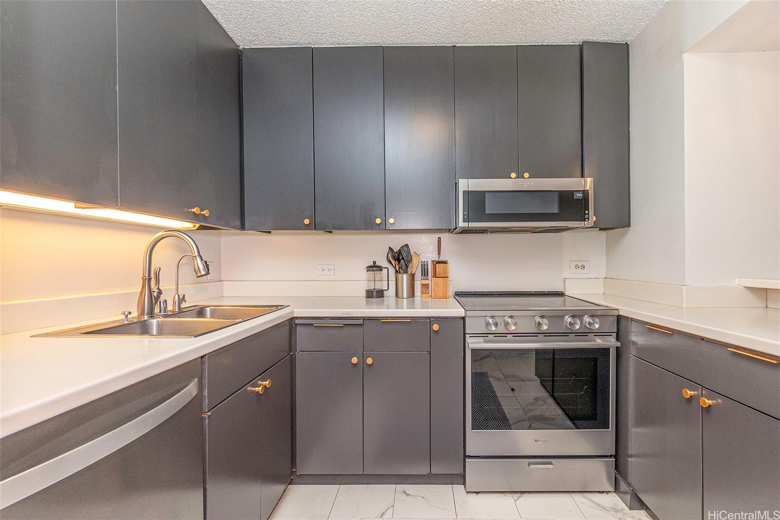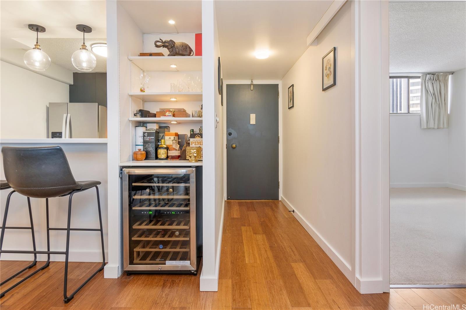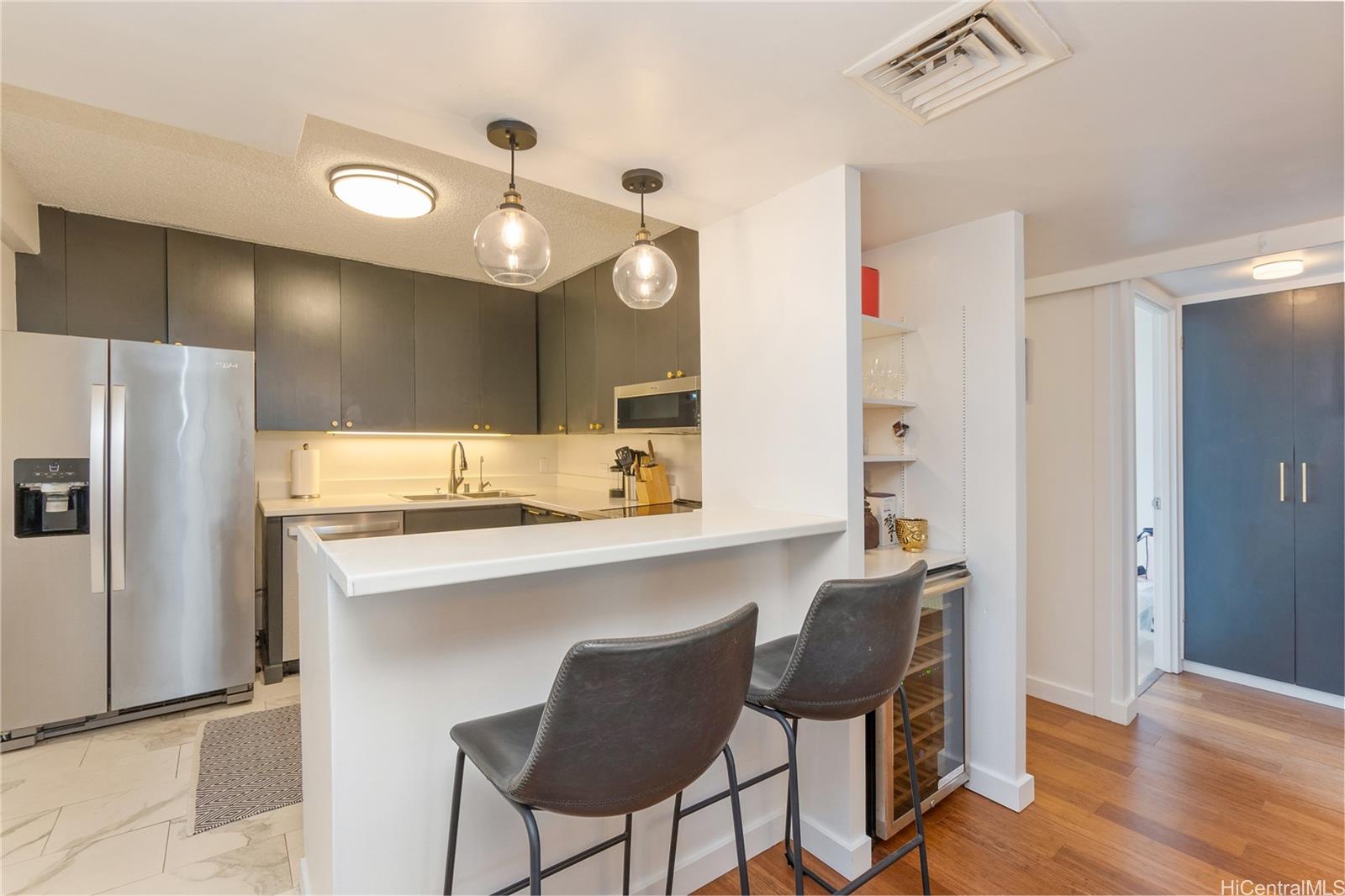 Beautifully remodeled Wailana residence conveniently located at the gateway to Waikiki! This move-in ready, fee-simple unit features 2 bedrooms, 2 bathrooms, and 1 parking stall. Enjoy fresh air on the spacious lanai with Diamond Head and city views, perfect for relaxing or entertaining.