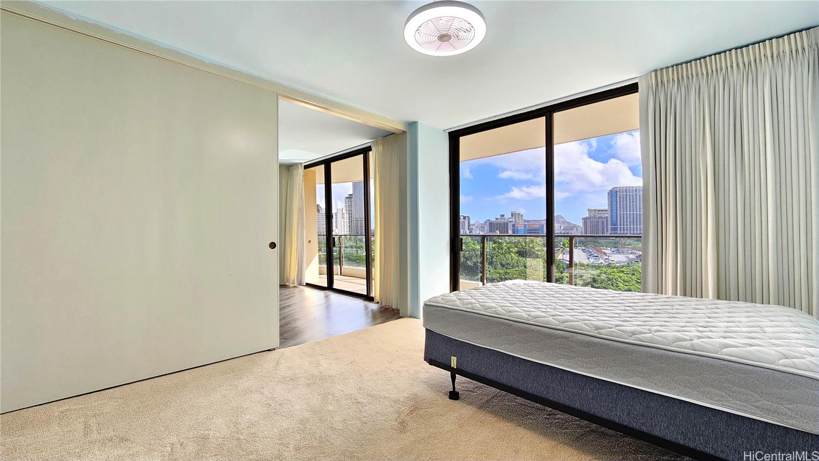 string(896) "Trustees finally obtained probate approval after 6 months of waiting. Rarely available & extra spacious 1,331 sq ft "00" 2 bedroom 2 bath with 226 sq ft lanai. Lease extended to 2069. Enjoy the outstanding view overlooking the open area of Fort DeRussy and Diamond Head. Desirable split bedroom floor plan (bedroom either side of living room, both with entrance to lanai & view). Renovated with popcorn ceiling removed, laminate floor (2021), carpet (2024), kitchen counter top (2020), stainless steel induction range (2021) washer/dryer (2022), cellular shades (2024), toilet (2021). Primary bedroom has a walk-in closet. Close to Waikiki beach and Hilton Hawaiian Village and the weekly fireworks show. Island Country Mart is conveniently located on the ground level. Covered secured parking stall and 2 storage locker located just outside unit door. Large BBQ area and pool area. Pet friendly."