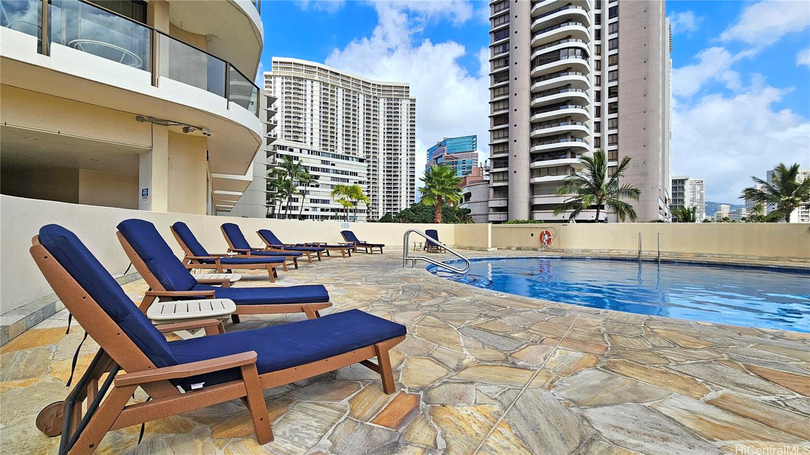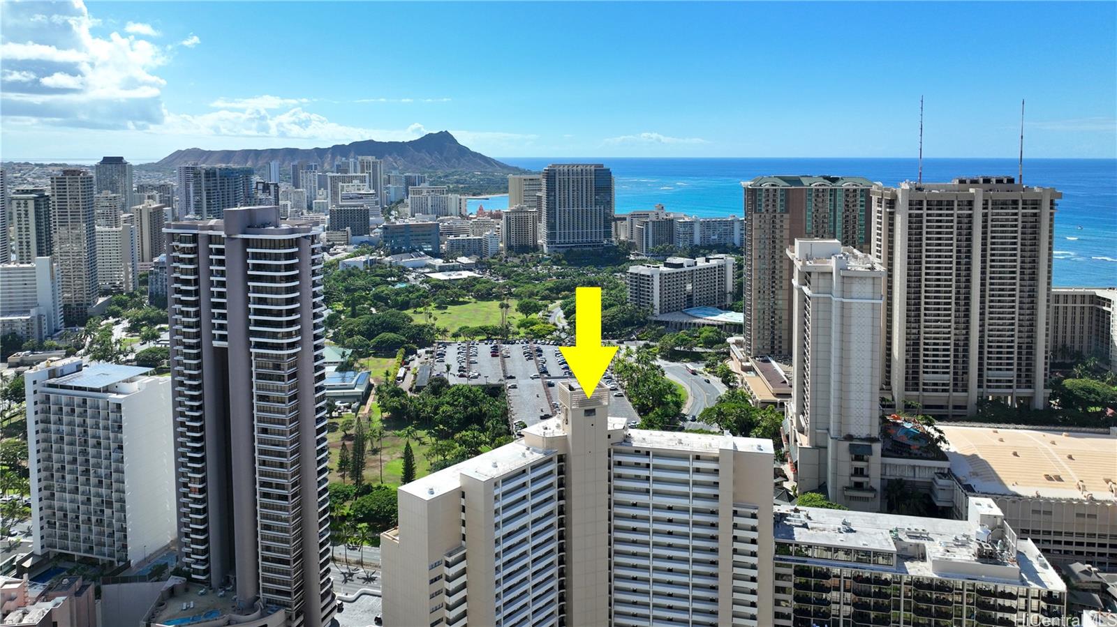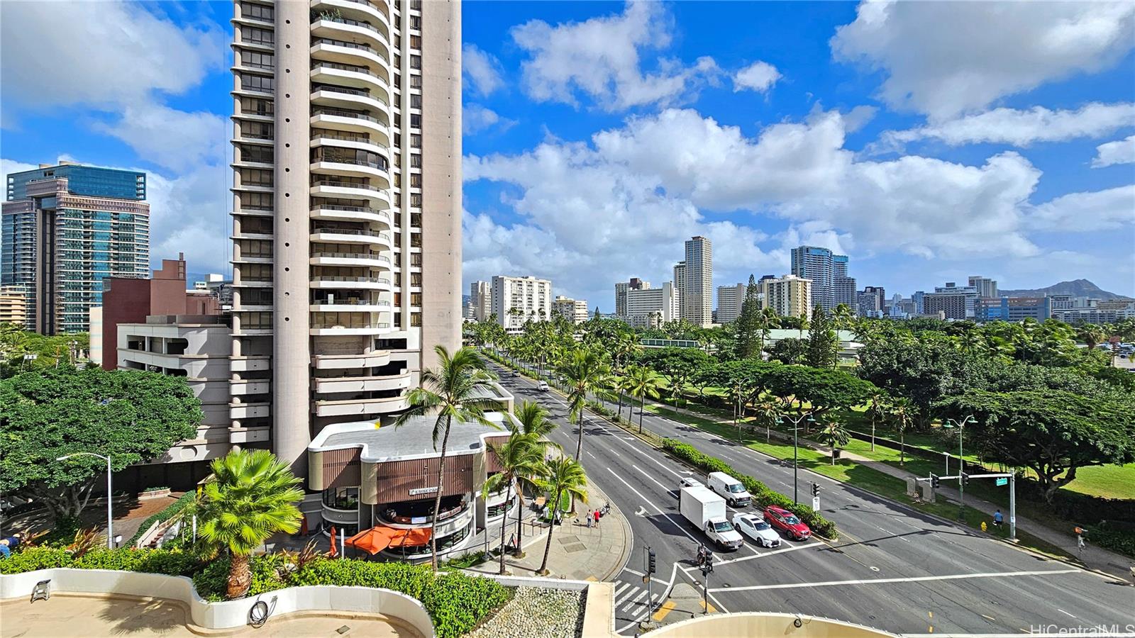 Trustees finally obtained probate approval after 6 months of waiting. Rarely available & extra spacious 1,331 sq ft "00" 2 bedroom 2 bath with 226 sq ft lanai. Lease extended to 2069. Enjoy the outstanding view overlooking the open area of Fort DeRussy and Diamond Head. Desirable split bedroom floor plan (bedroom either side of living room, both with entrance to lanai & view). Renovated with popcorn ceiling removed, laminate floor (2021), carpet (2024), kitchen counter top (2020), stainless steel induction range (2021) washer/dryer (2022), cellular shades (2024), toilet (2021). Primary bedroom has a walk-in closet. Close to Waikiki beach and Hilton Hawaiian Village and the weekly fireworks show. Island Country Mart is conveniently located on the ground level. Covered secured parking stall and 2 storage locker located just outside unit door. Large BBQ area and pool area. Pet friendly. Listing by: Realty Edge Inc (808) 227-0866