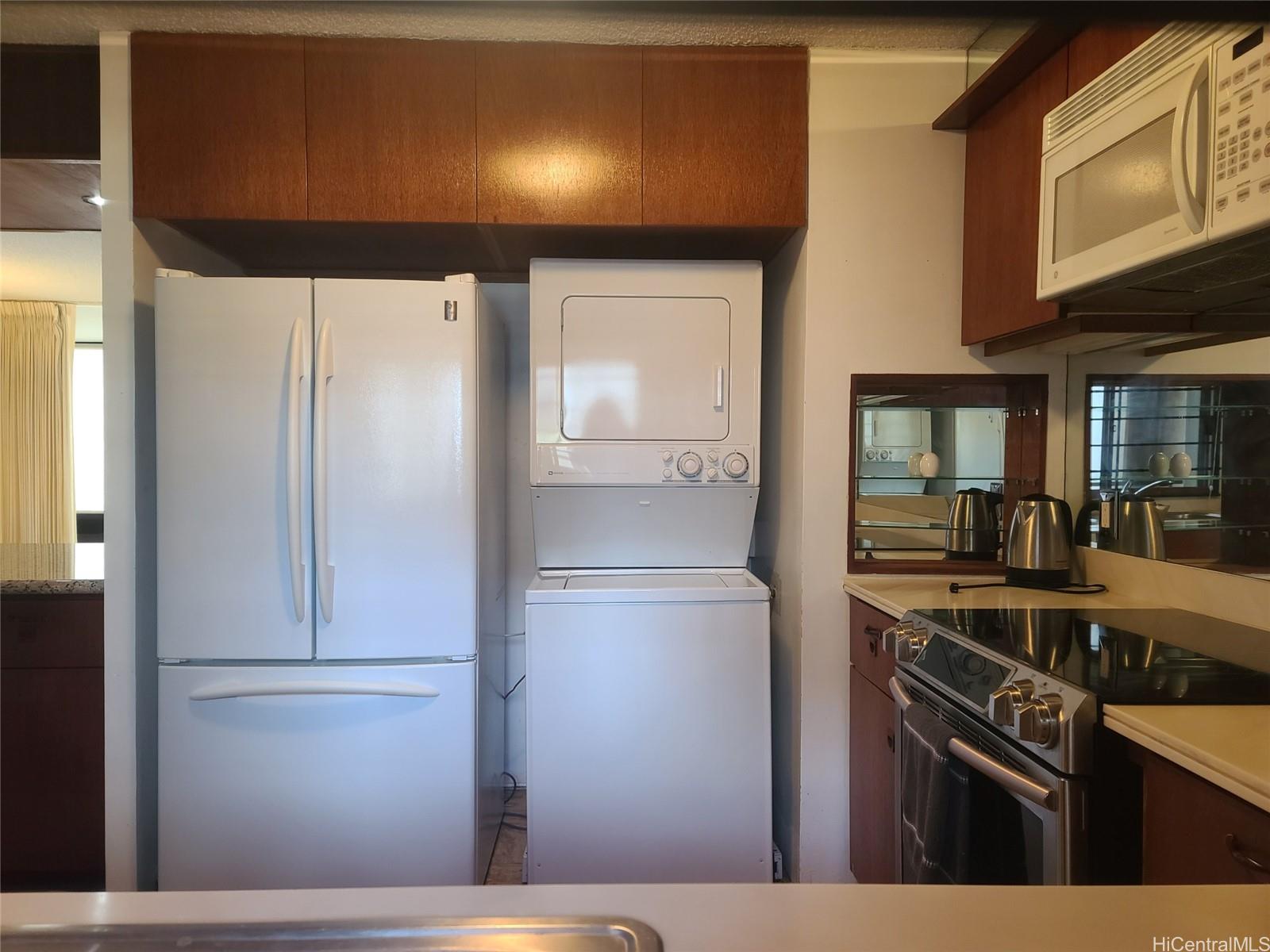 string(921) "This unit boast phenomenal views of Diamond Head ocean and fireworks. These amazing views awaits you every day from this premier luxury residential building. Only 4 units per floor allows for your condo living a more quiet and private environment.  This highly desired "C" stack unit with spacious 2 bedrooms and 2 private ensuite bathrooms welcomes your reality of living in paradise. The lanai has been enclosed for added living space. Beautiful custom built-in cabinets, bookshelves, and marble and wood parquet floors. Washer and dryer located in the unit. The building is pet friendly and has a pool, hot tub, BBQ, 24 hour security and a resident manager. Enjoy the convenience of living near boutiques, stores, renowned restaurants, and plenty of entertainment. The bus stop is located close by. The monthly maintenance fee covers ALL utilities including central AC, electricity, Cable TV, internet, hot/cold water."