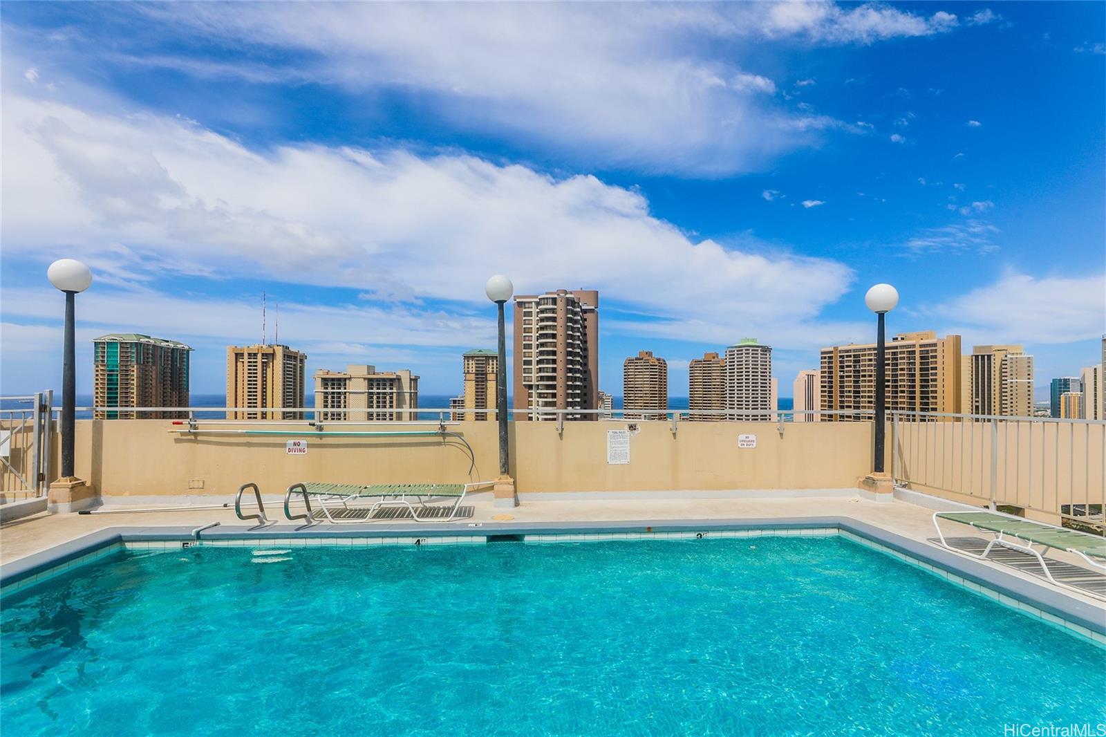Location, location, location and priced to sell! Great New Price 399,000. Bright and Airy with mauka Tradewinds from your lanai. Located at the entrance of Waikiki. Just drive straight into the parking lot off of McCully or Kalakaua. A convenient location in and out of Waikiki. Walking distance to Fort DeRussy Beach Park, Convention Center, Waikiki Beach, Ala Moana Beach, restaurants and world renowned Ala Moana Shopping Center. Ready to move in with new paint, tile floors, floor to ceiling windows and no popcorn on ceiling (2024). New bath vanity, sink, tub and beautiful tile surround. Conveniently equipped with a washer and dryer in the unit and an extra storage space. 2 entrances, Secured entry and Pet Friendly. 2 elevator's Newly renovated roof top, amenities includes pool, saunas, showers, restrooms, and a BBQ area. 155 units, 10 guest parking stalls, 100% fully insured, Come enjoy the PAVILION at Waikiki where your maintenance fees include your air conditioning, Cable TV, Common expenses, electricity, hot water, water and sewer. Listing by: Hawaii Life (800) 667-5028