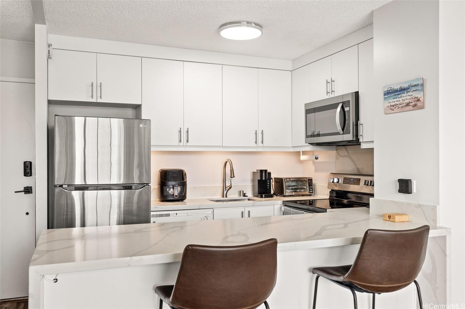 string(1172) "Priced competitively to sell, and seller is very motivated. Great time to make an offer! Lovely condo unit perfectly situated in an excellent location right at the entry point to Waikiki. Completely remodeled in 2022 with quartz countertops, vinyl plank flooring, new paint, new cabinets, and an updated bathroom. Conveniently equipped with a new washer and dryer in the unit. Central AC to keep you cool on hot summer days. Newly renovated rooftop amenities includes pool, men's and women's saunas, showers, restrooms, and a barbeque area. Secured entry, pet friendly, and VA approved building. Sold fully furnished and move in ready. Close proximity to restaurants, shops, parks, beaches, grocery stores, and Ala Moana Mall. Watch the Hilton Hawaiian firework show from the rooftop pool and grill area on Friday nights! 30+ day rentals allowed. Designated oversized, covered, and secure parking stall, with added bonus of guest parking. Includes additional personal storage space, and bike/surf rack available. Current tenant lease ends in August with possibility of renewal. This unit receives multiple rental applications when available. Wonderful investment property!"