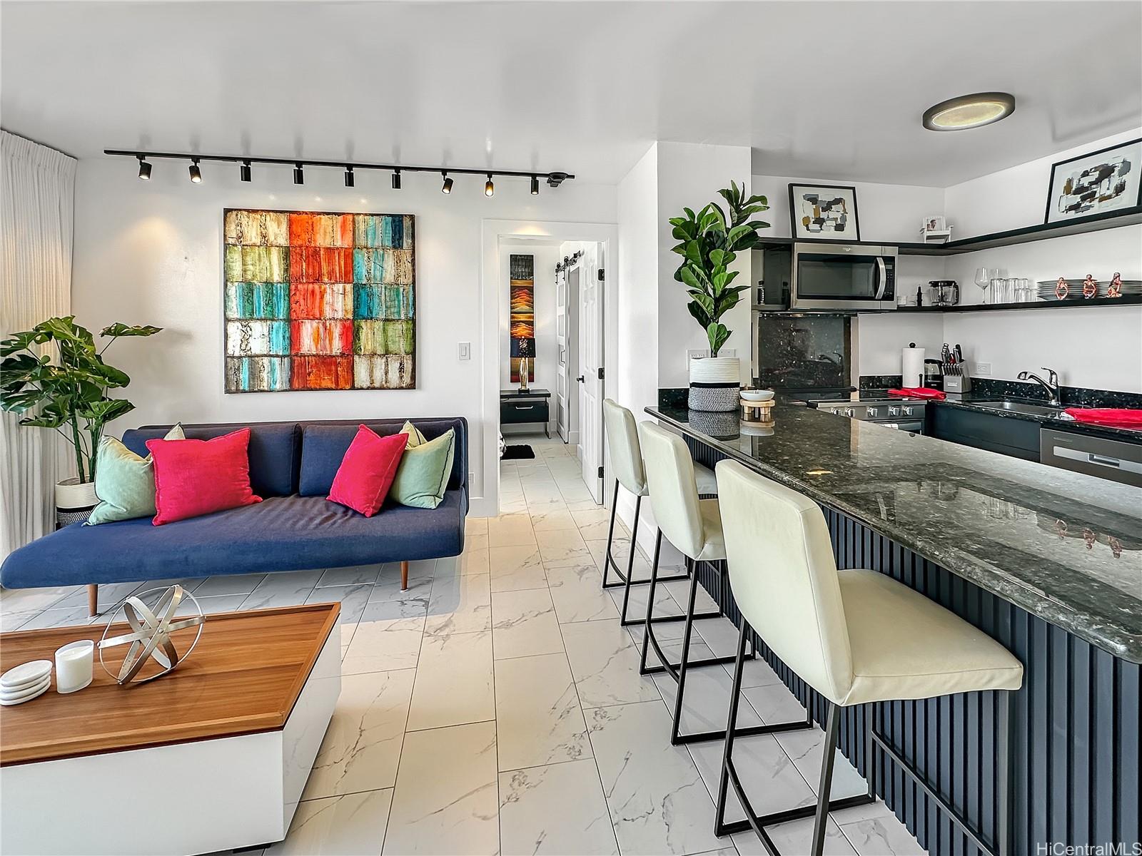 string(1035) "Fully renovated in 2024, this high-floor one-bedroom at the Pavilion at Waikiki combines stunning ocean, sunset, and city views with modern, turn-key living. Designed for comfort and style, it features all-new appliances, full-size washer and dryer, private lanai, and elegant furnishings throughout. The pet-friendly building allows 30-day minimum rentals, offering flexibility for a primary residence, vacation retreat, or investment opportunity. Enjoy the rooftop amenities: pool, BBQ area, men’s & women’s saunas, showers, secure entry, and guest parking. Ideally located near Fort DeRussy Beach Park, Waikiki Beach, Ala Moana Center, and the Hawai‘i Convention Center, with dining, shopping, night life, and transit just out your door. The Pavilion offers a peaceful community atmosphere with many full-time residents, making it equally perfect as a home, second residence, or income-producing property. Watch Friday night fireworks from your private lanai or the rooftop and experience the best of island living in Waikiki."