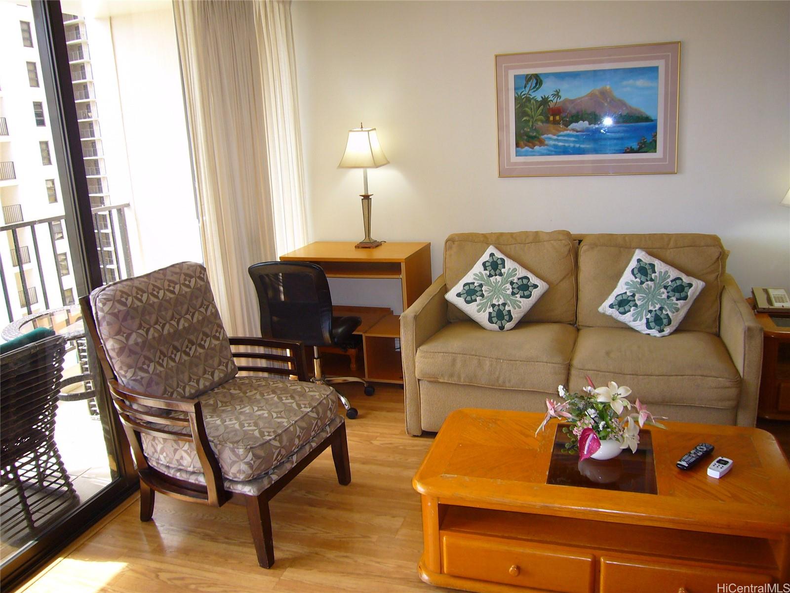 [0] => High floor well-maintained unit in the highly desirable Waikiki Banyan! Located just a block away from the famous