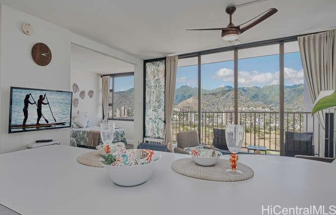 New priced this high-floor, corner unit at the Waikiki Banyan offers unobstructed panoramic mountain and Ala Wai Golf Course views and sparkling city lights at night. With no buildings in front, the sense of openness and natural sunlight creates a refreshing and uplifting experience. Located just a block away from famous Waikiki Beach, you can enjoy nearby world-class restaurants and shopping. The City Bus and Tour Buses are just steps away making getting around Waikiki easy. The Waikiki Banyan is a popular vacation rental destination. The application to renew the current Nonconforming Use Certificate (NUC) permitting daily rentals has been APPROVED through September 30, 2026. There are several vacation rental companies operating on site but there are many other options for property managers or do-it-yourself owners. Amenities include a heated pool, whirlpool, tennis court, BBQs, saunas and a children's play area. There is a community laundry on each floor and 24/7 building Security. Additional storage may be available to rent. New appliances installed and the "popcorn" ceiling was removed in 2025. Listing by: CENTURY 21 Hawaiian Style (808) 382-6551